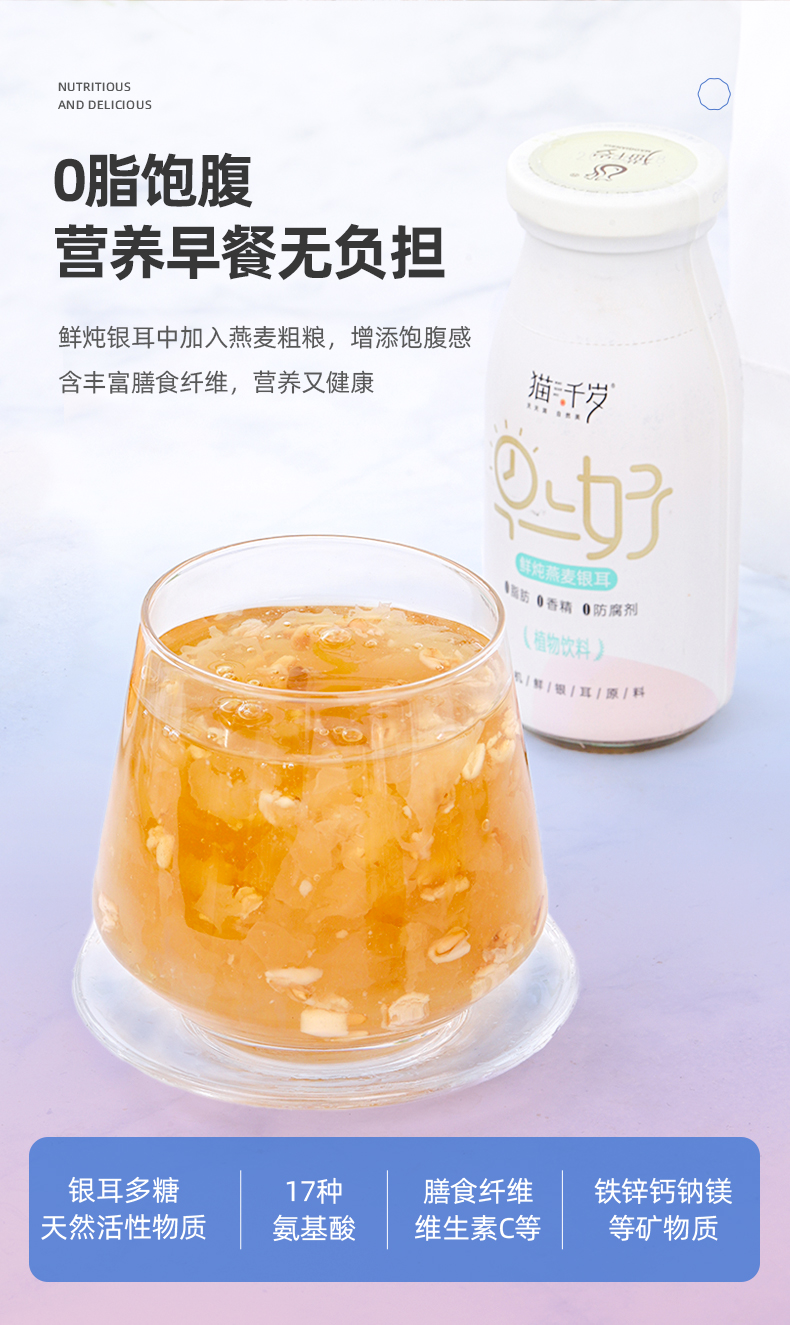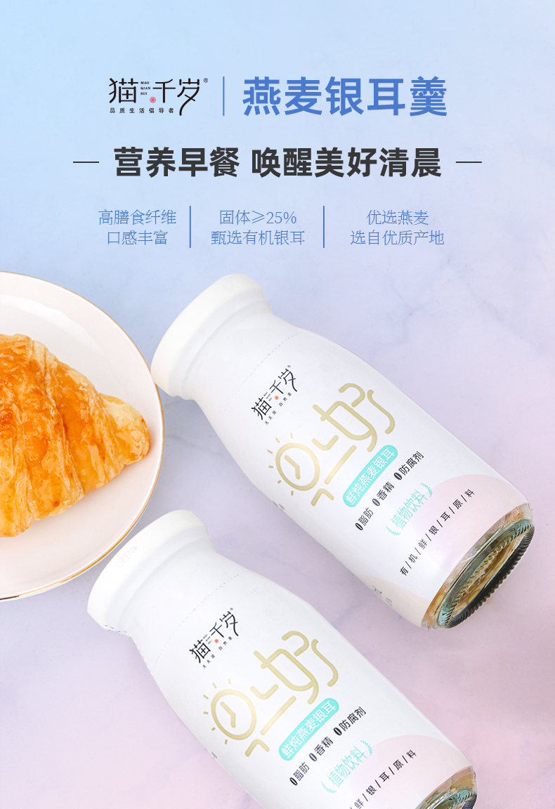 【冯站长专属】猫千岁燕麦银耳鲜露 0脂低糖代餐 营养早餐 220ml*6瓶 zb