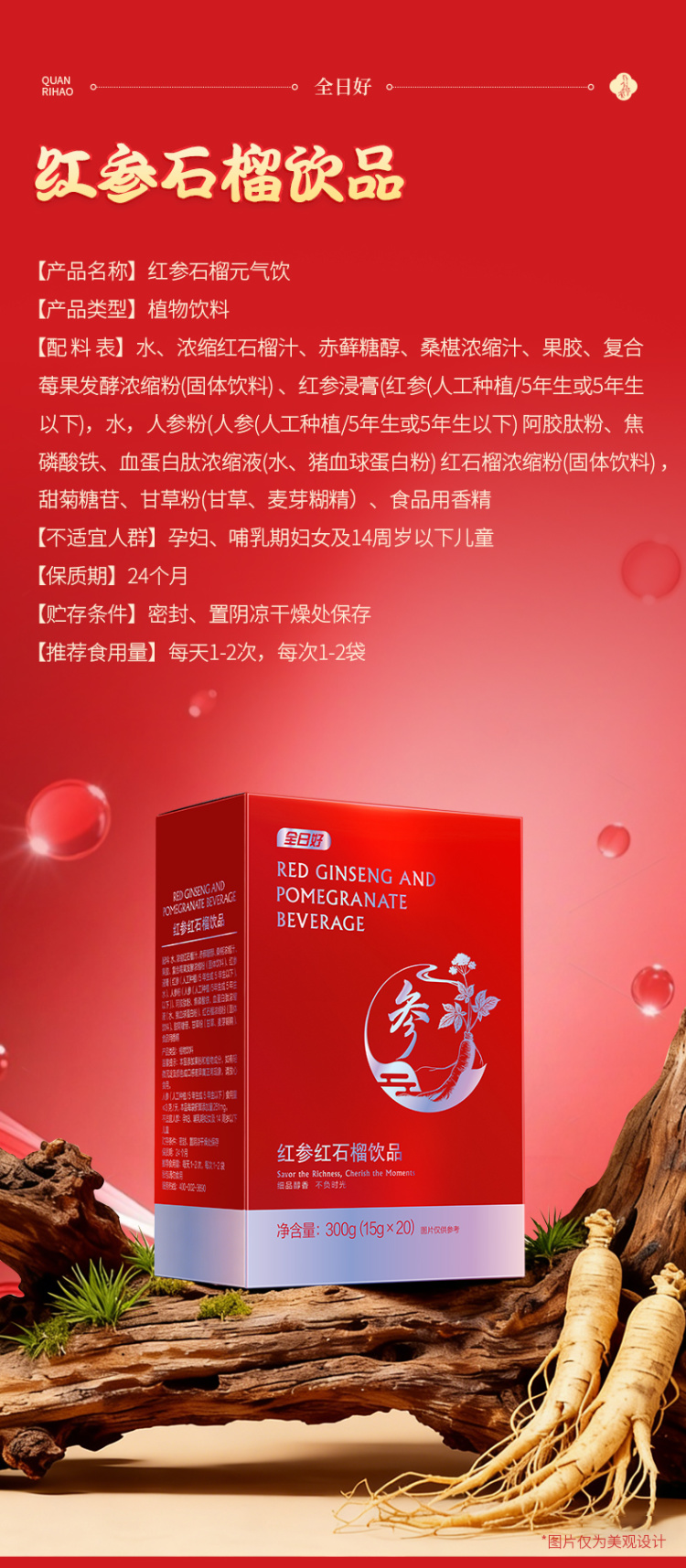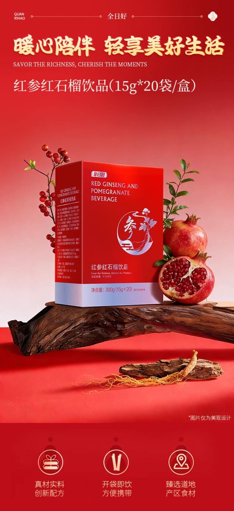 【超级爆款】全日好 红参红石榴饮品 (15g*20袋/盒)*3 新品首发