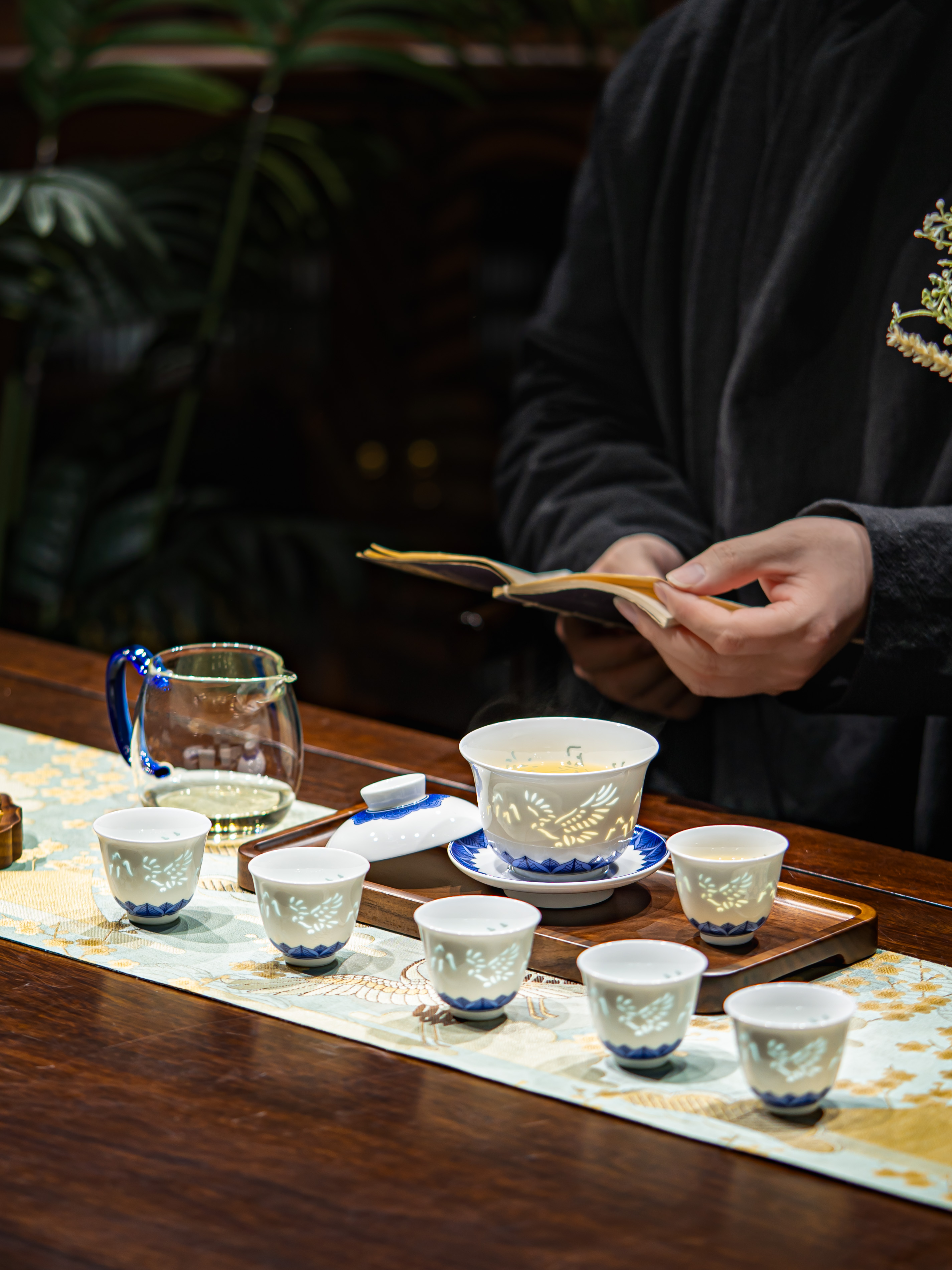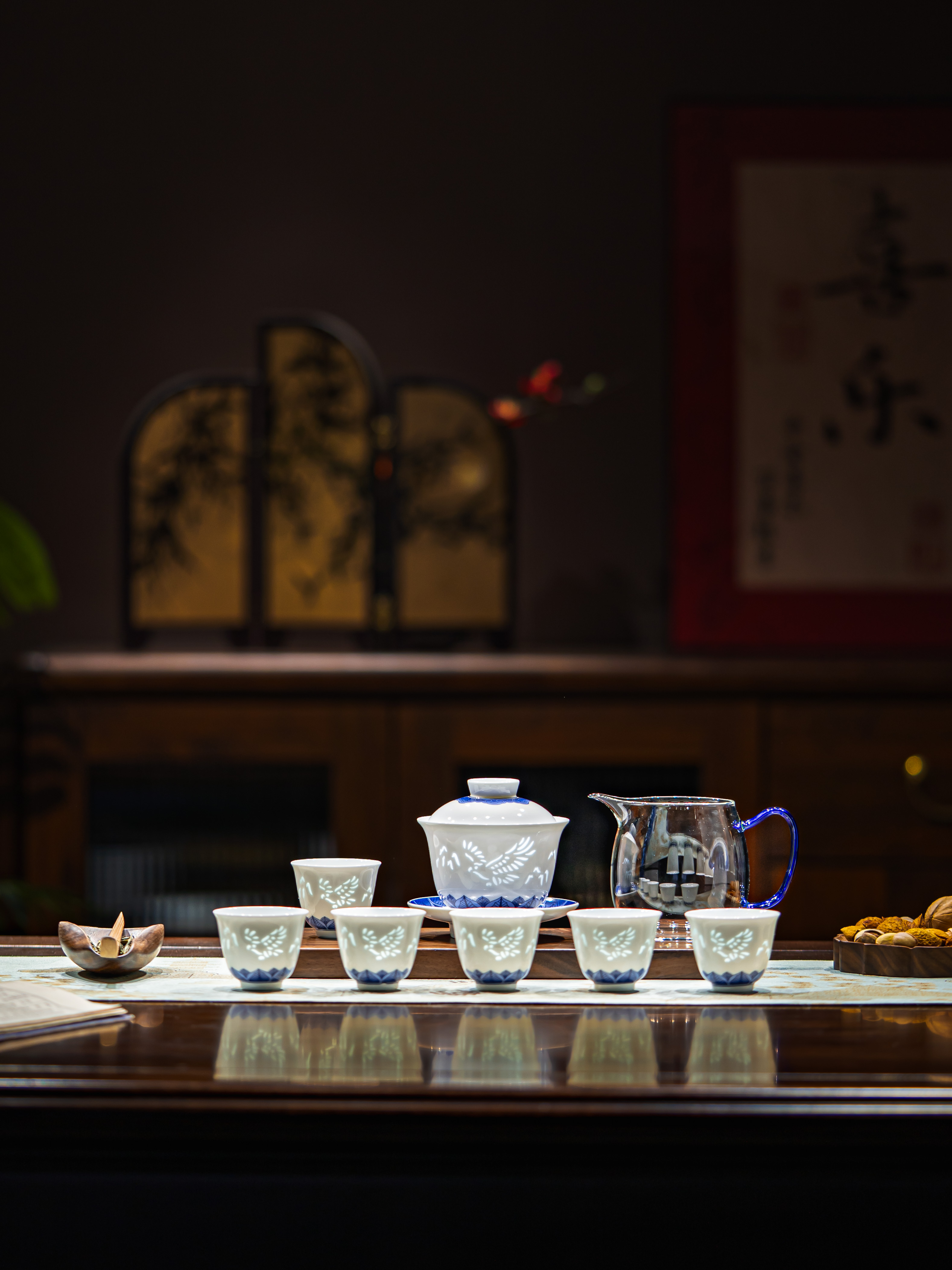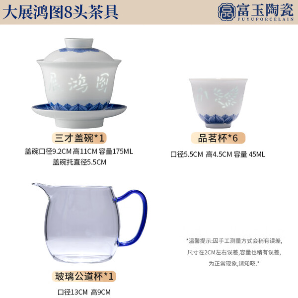 新品 富玉 | 景德镇玲珑瓷组合功夫茶具大展鸿图8头茶具