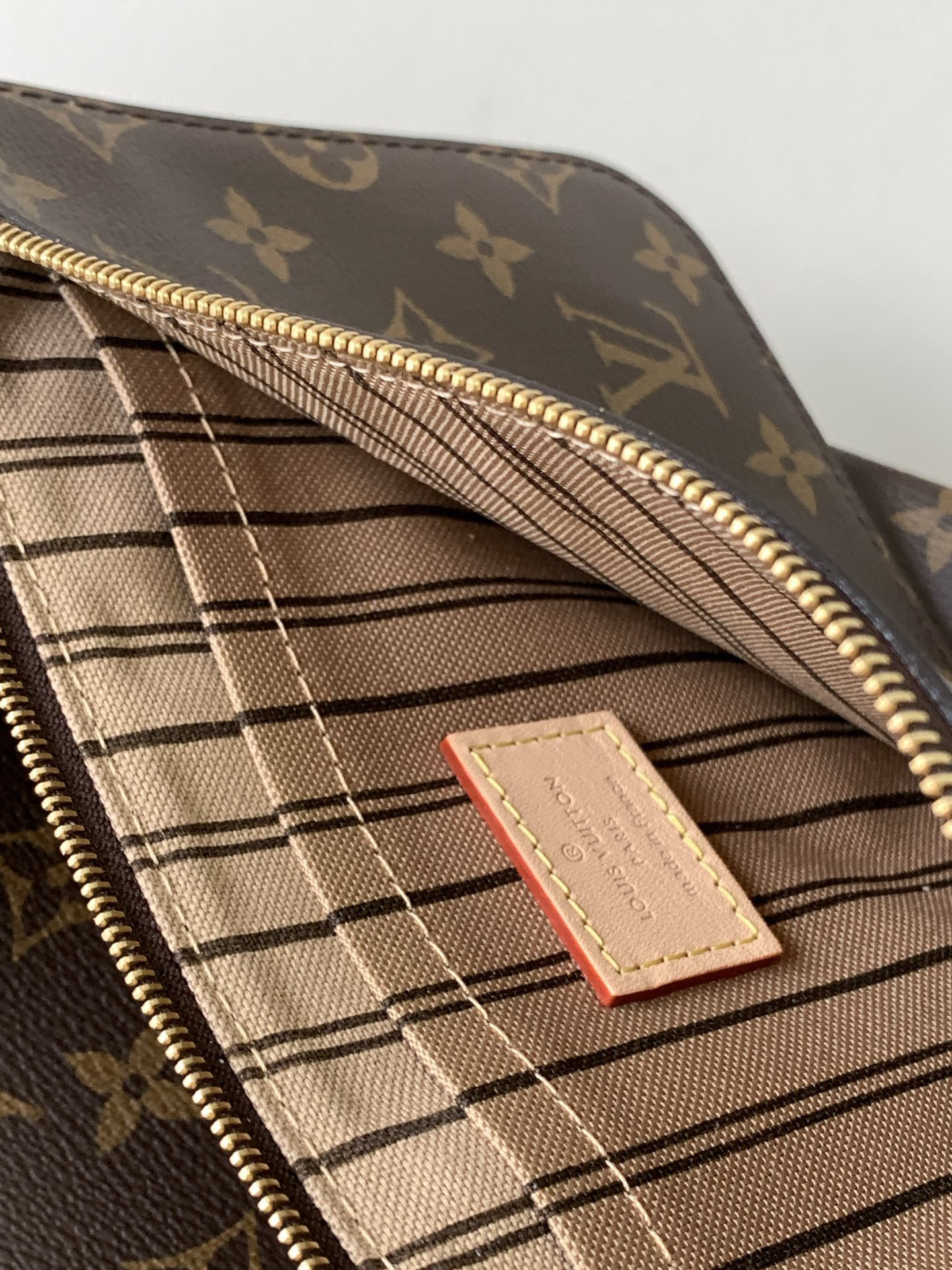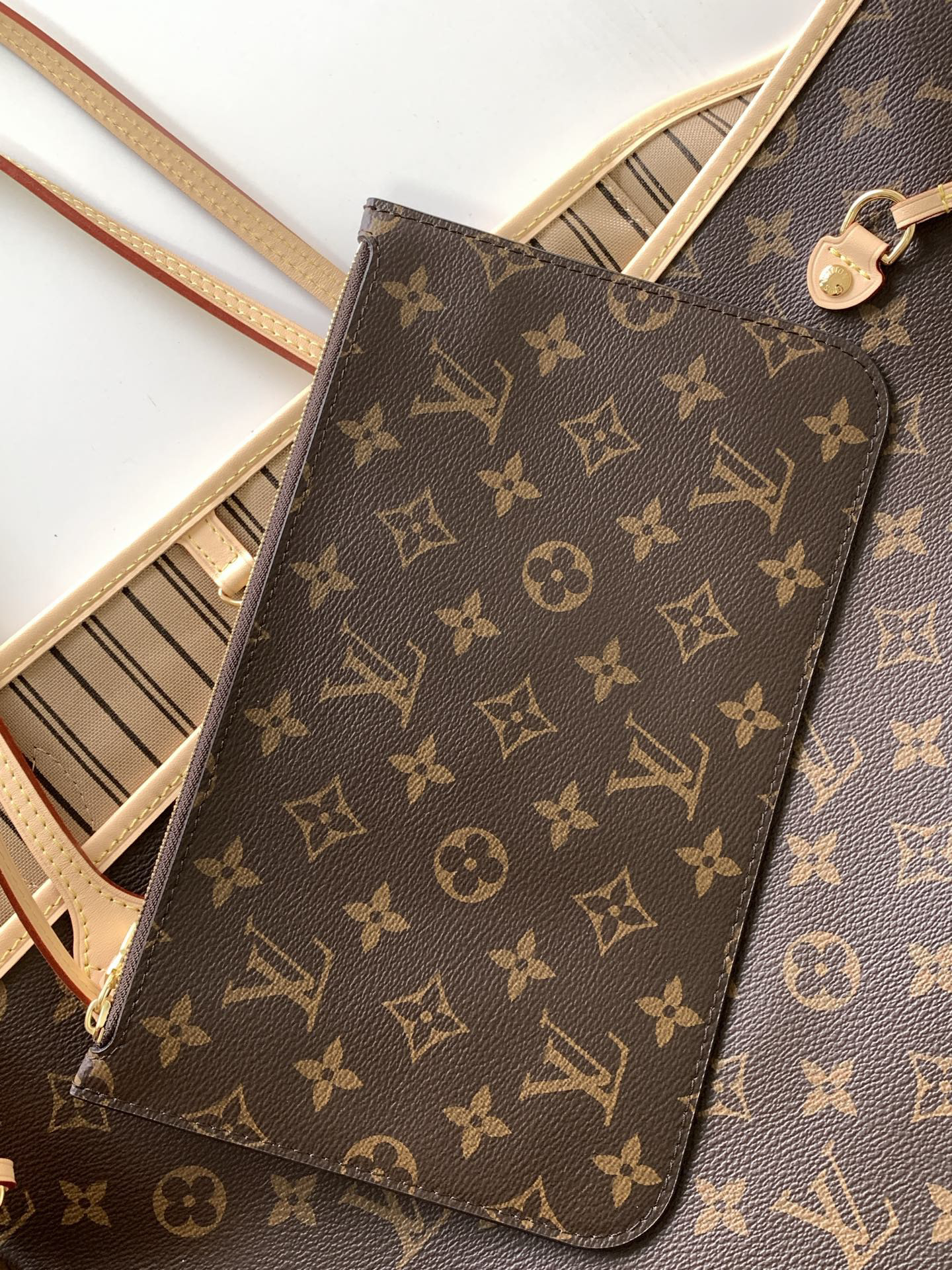 秋冬特惠💰1220 渠道级LV【全钢五金 变码芯片】te级LV 全套包装 40990老花杏 经典大号购物袋 路易威登新款 Neverfull 全新演绎经典手袋,探索袋内精致细节。重新设计的内袋采用了清新的织物内衬和灵感源自路易威登档案馆的复古细节,zui值得称道的莫过于可脱卸式拉链手包,它既可单独作为一只精致手拿包使用,亦可作为额外的口袋。 明快的内衬色调为 Monogram 经典帆布增加了更多活泼生动之感。
