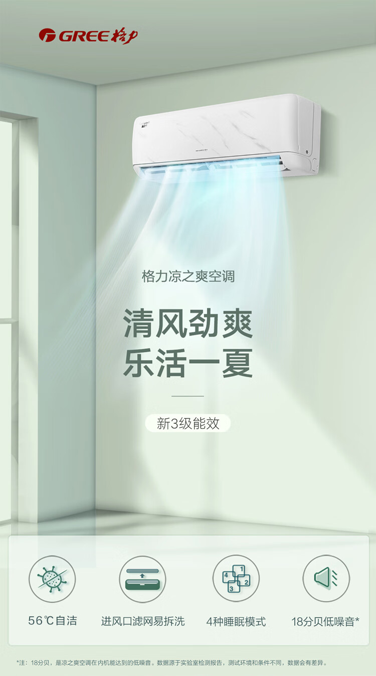 GREE格力 凉之爽 1匹/1.5匹 三级能效 变频冷暖空调挂机