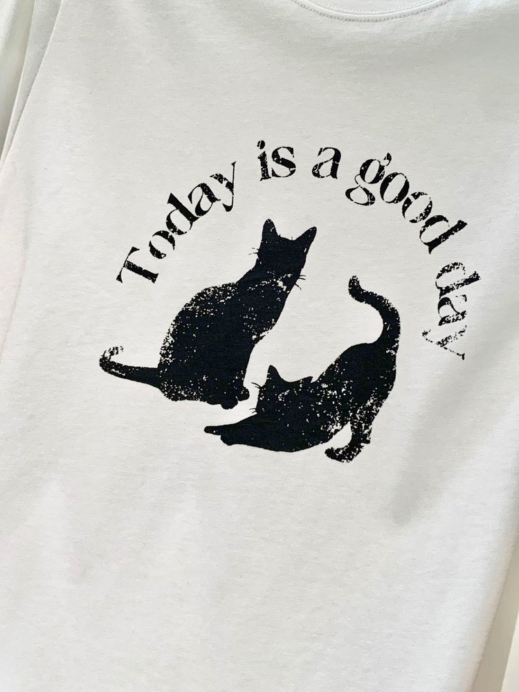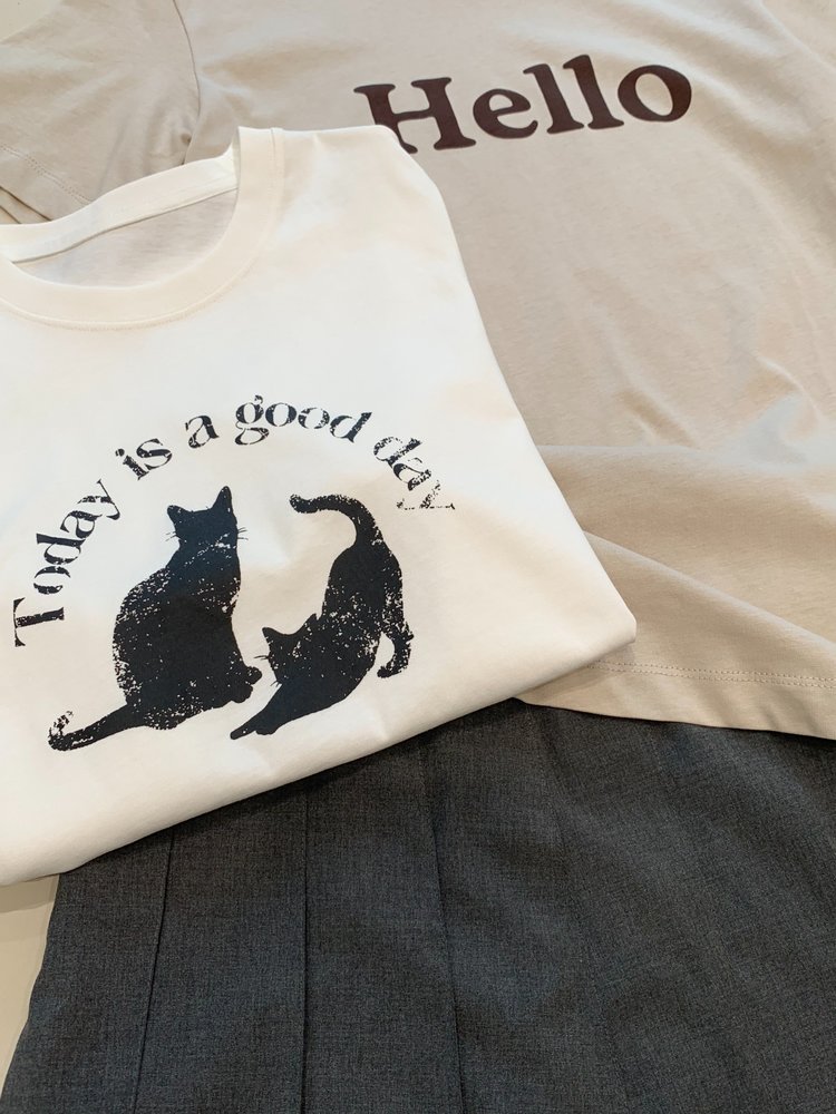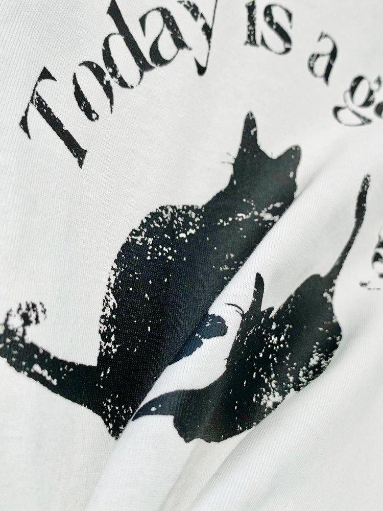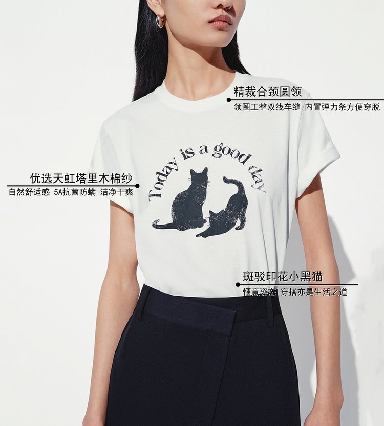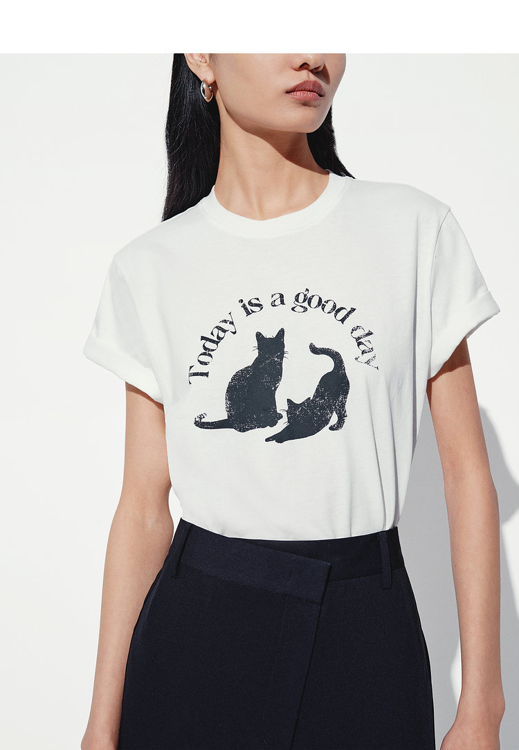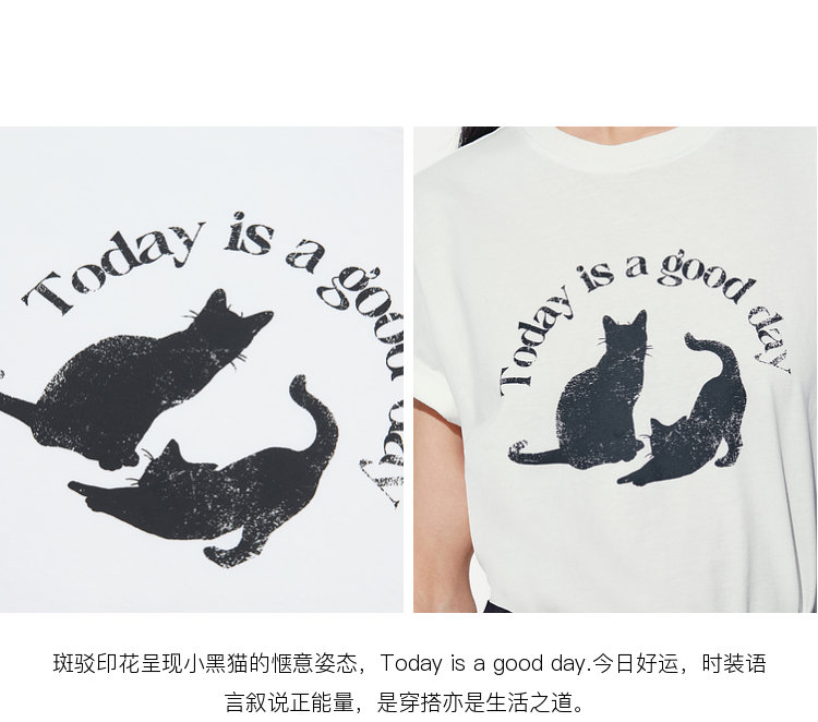 【MOCO猫咪印花正肩T恤|云感棉×艺术斑驳纹】