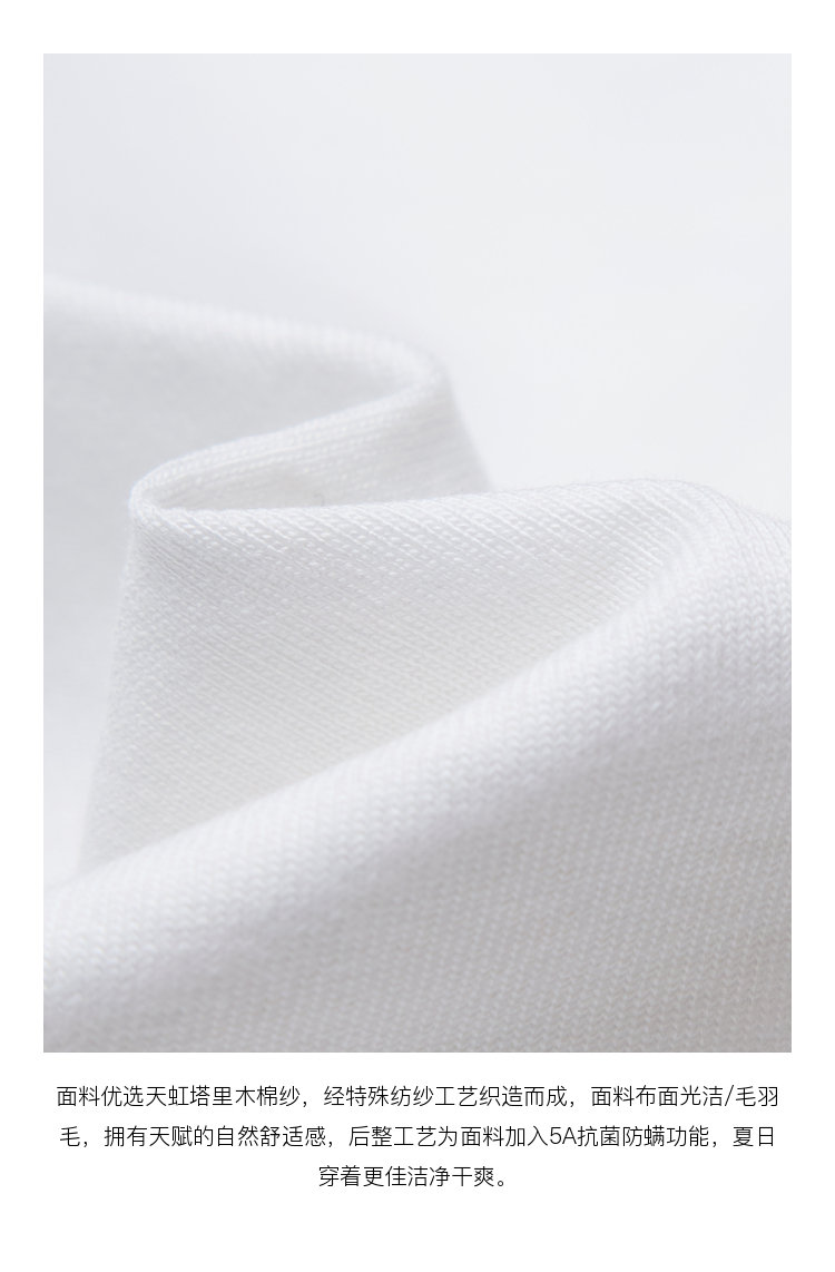 面料优选天虹塔里木棉纱,经特殊纺纱工艺织造而成,
