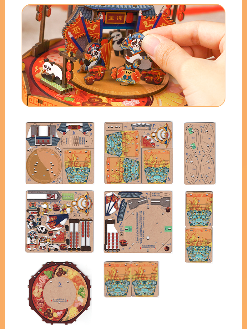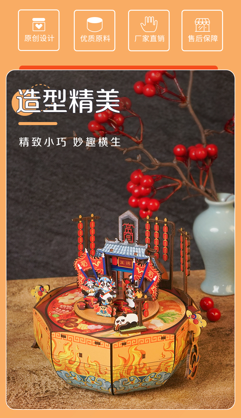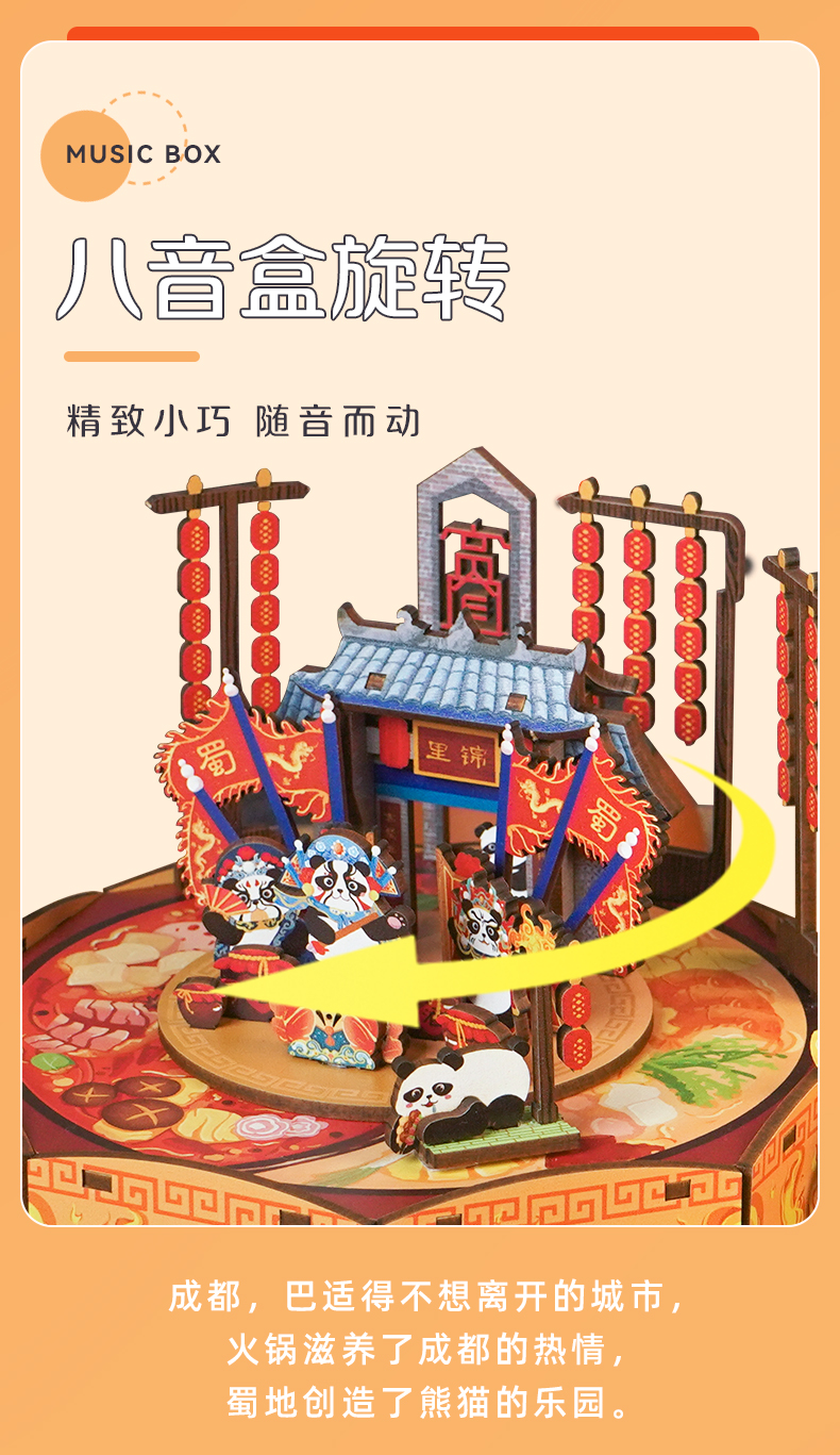 同趣 成都印象拼装八音盒 熊猫玩具 生日礼物
