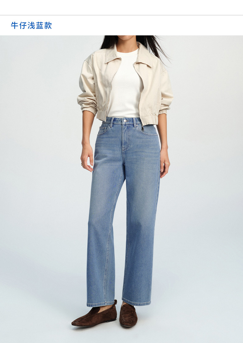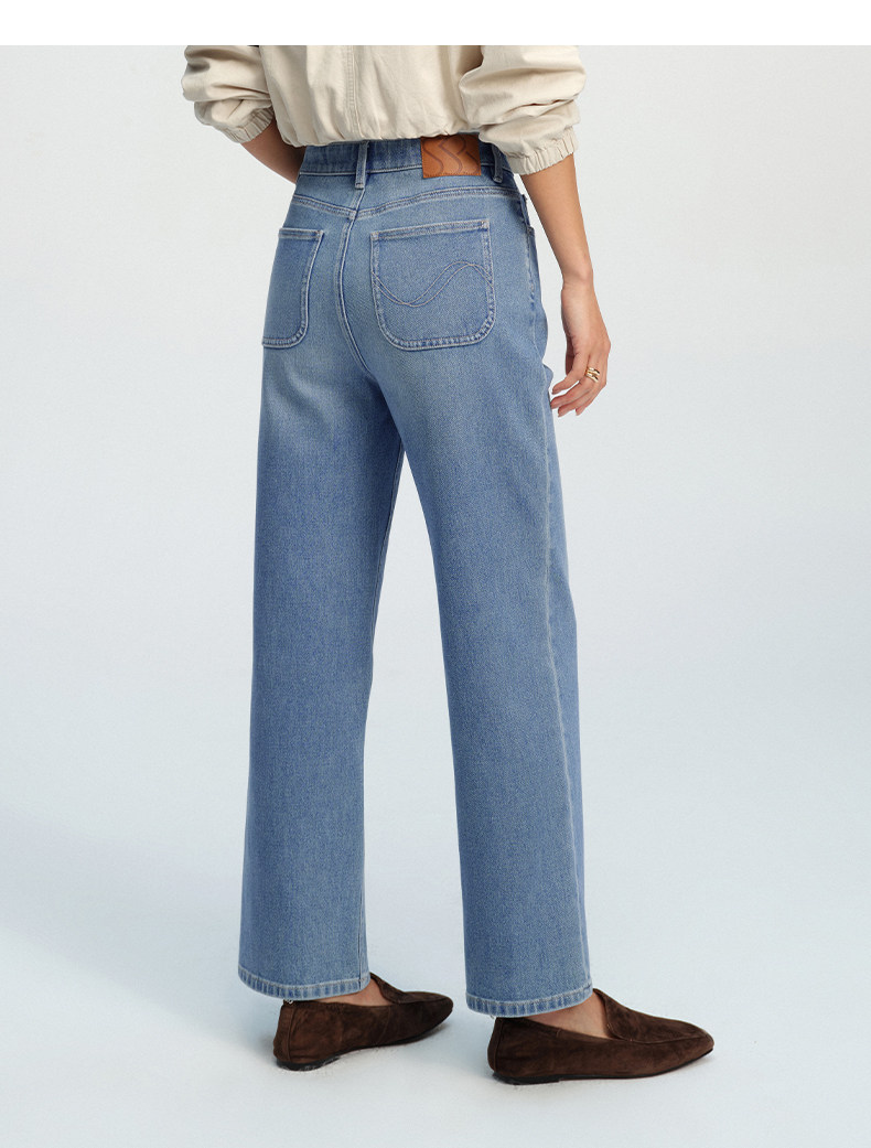 【八分威化裤】simplepieces春新款SPS牛仔女四面弹宽松阔腿裤
