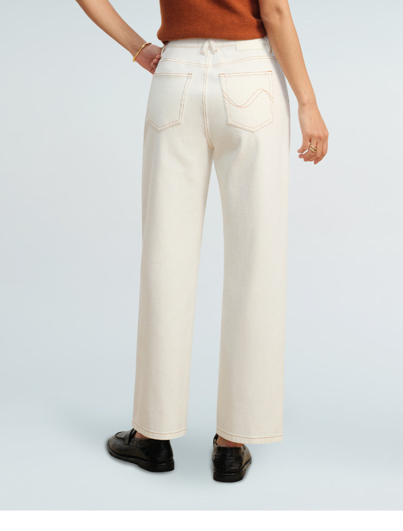 【威化裤】simplepieces春新款SPS牛仔女显瘦撞色线阔腿拖地裤
