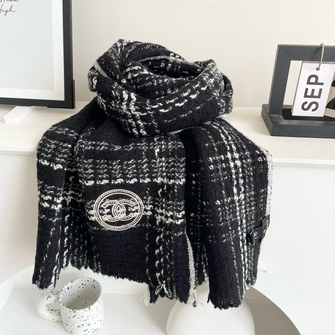 秋冬特惠💰320 香奈儿围巾 实物真心美 披肩配以精美logo的刺绣 整条围巾颜色的搭配都非常到位 细节都可见 整个披肩围巾给人大牌气场的同时又非常精致高端 绝对值得入手的新款 尺寸:32X200cm