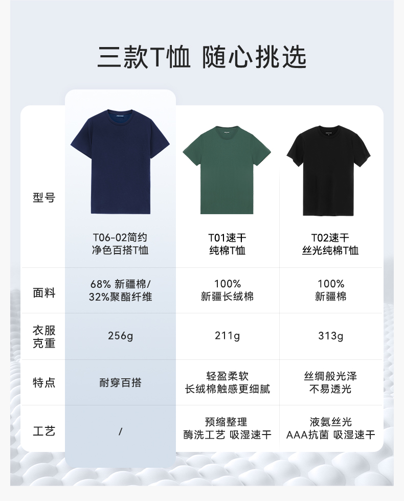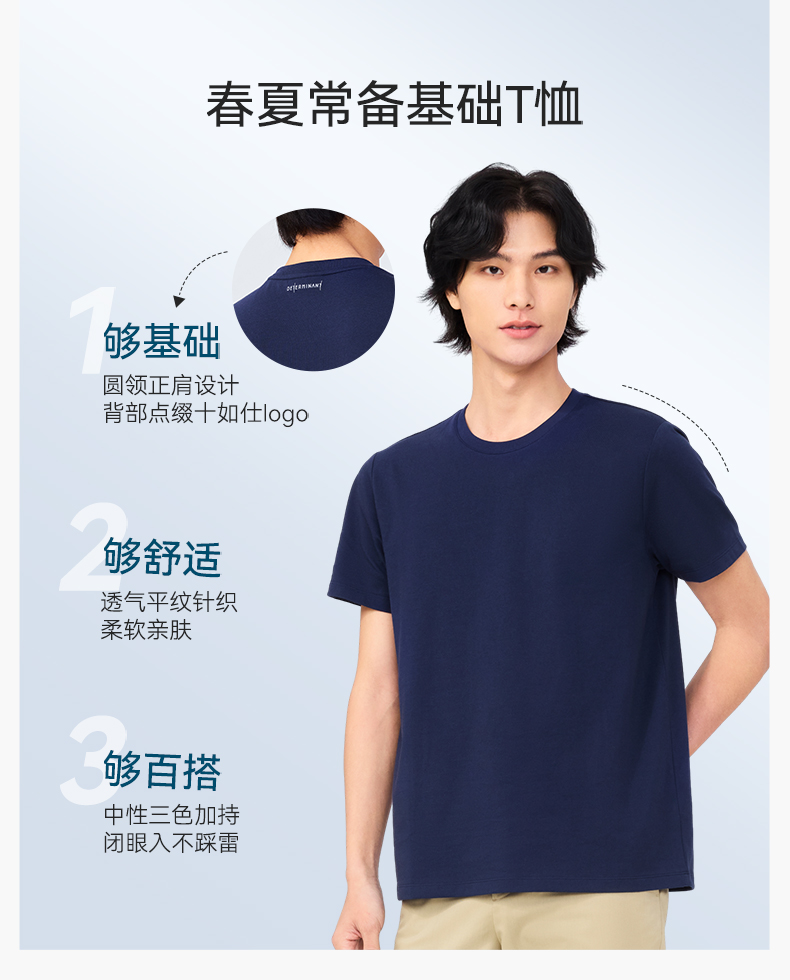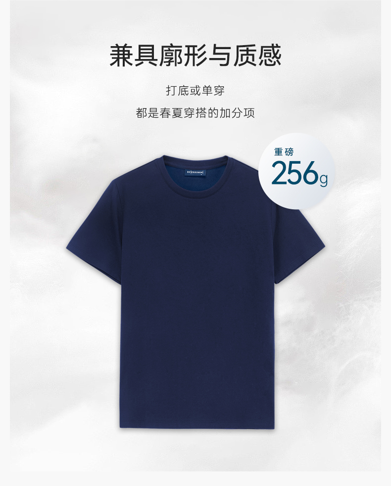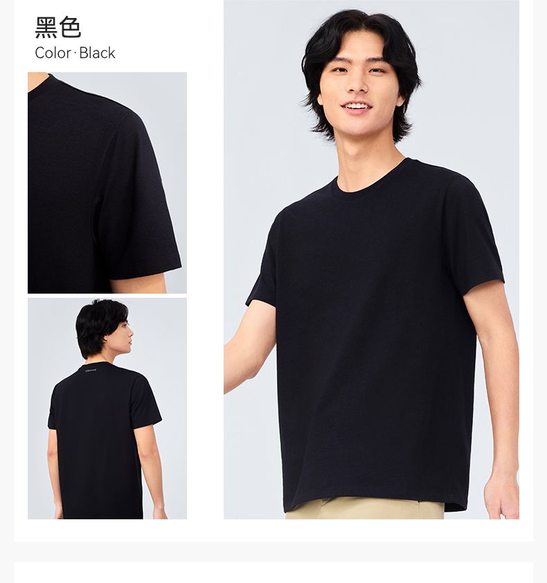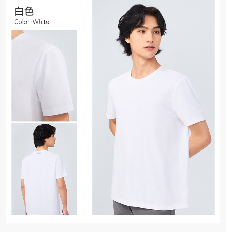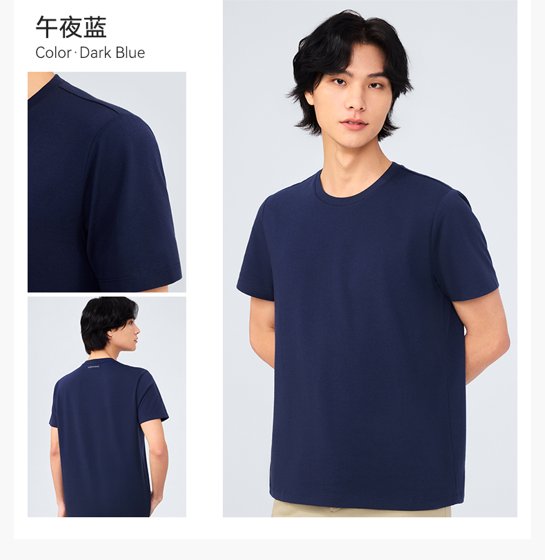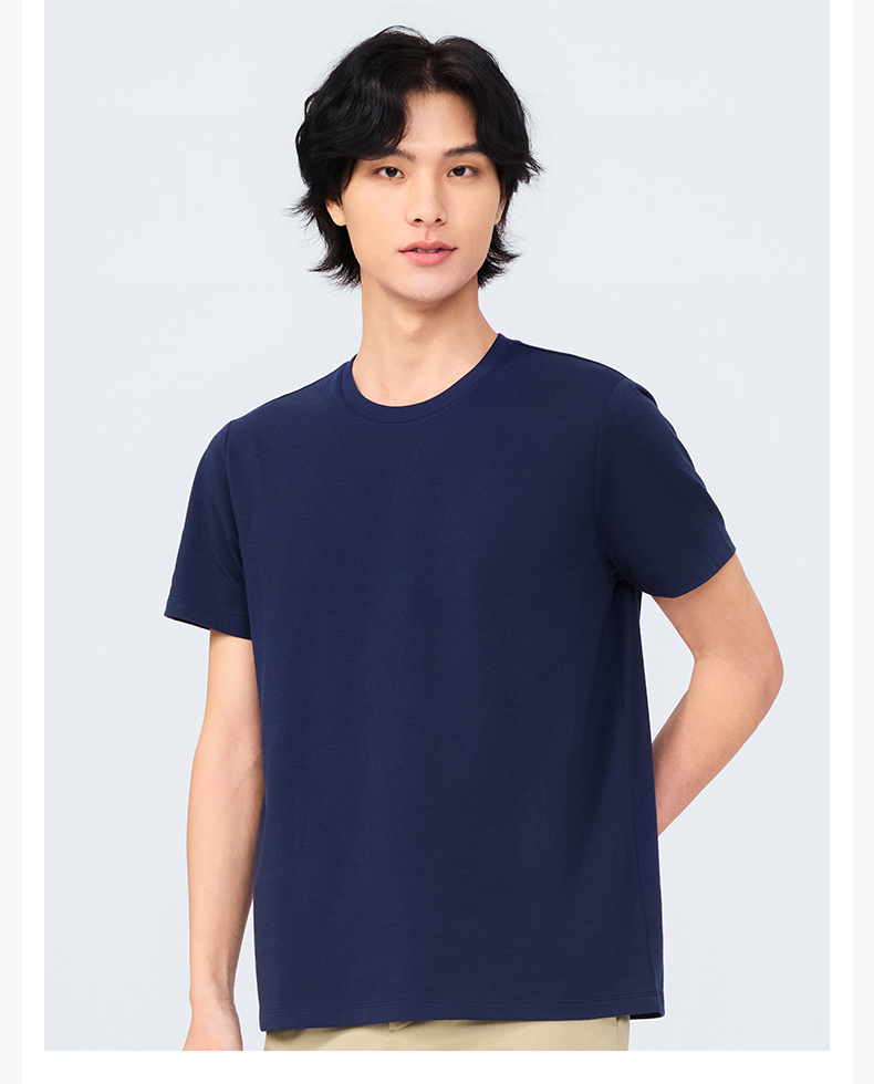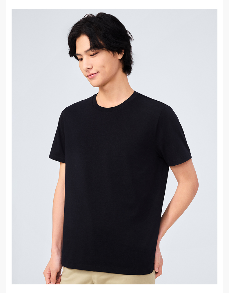 十如仕100%新疆长绒棉拒水拒油拒污黑科技柔软透气圆领短袖T恤-T17-01