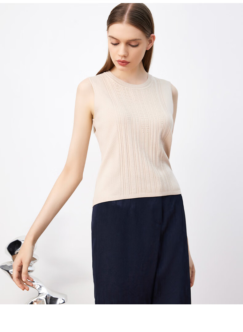 迪安诺女装毛针织衫浅米色修身辣妹短上衣吊带背心女N3399K3332M1