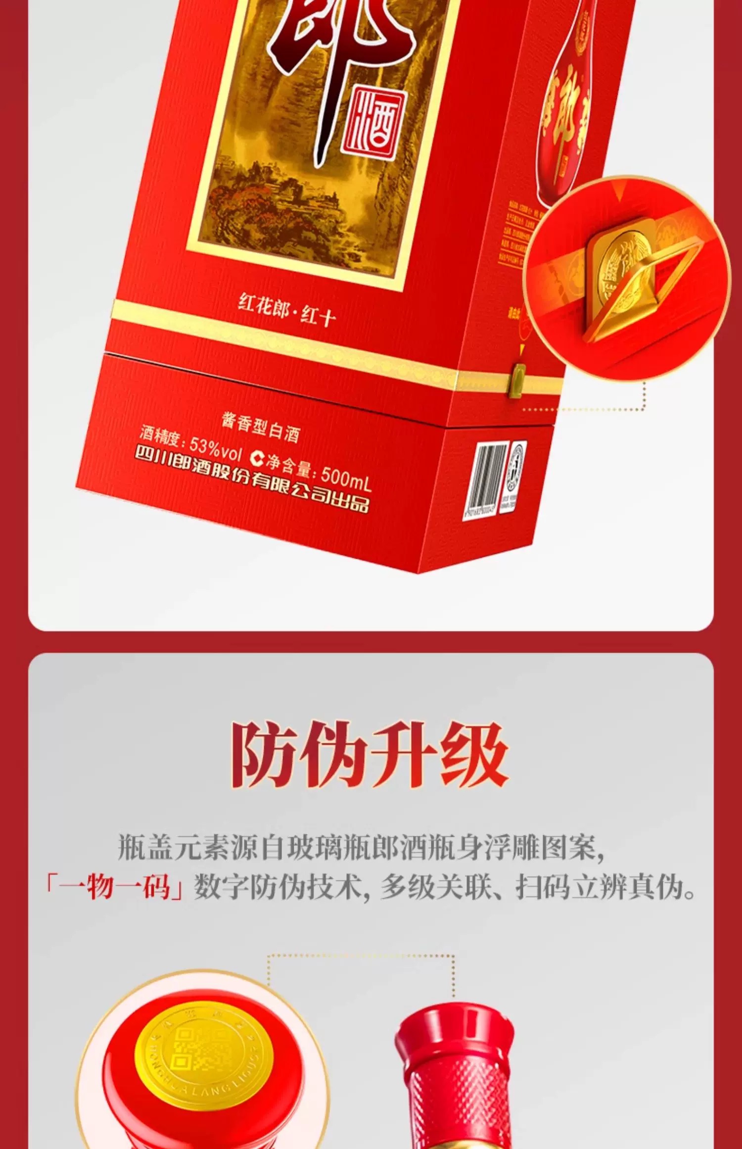 红花郎·红十 53度酱香型白酒 500ml 单瓶装