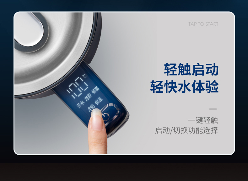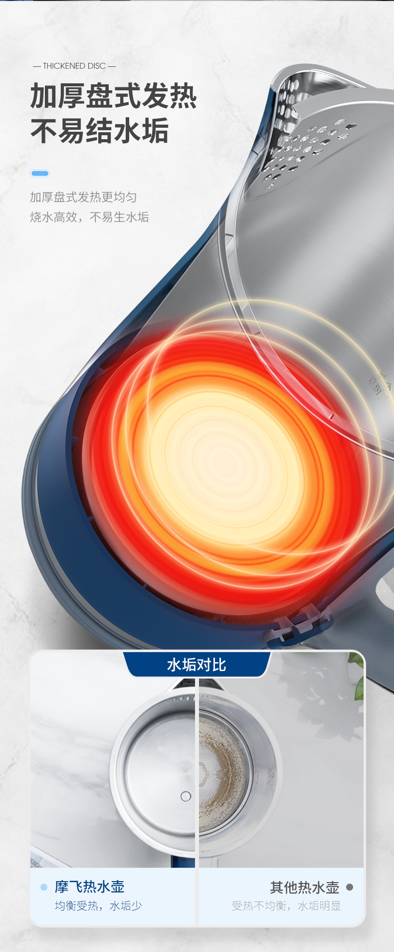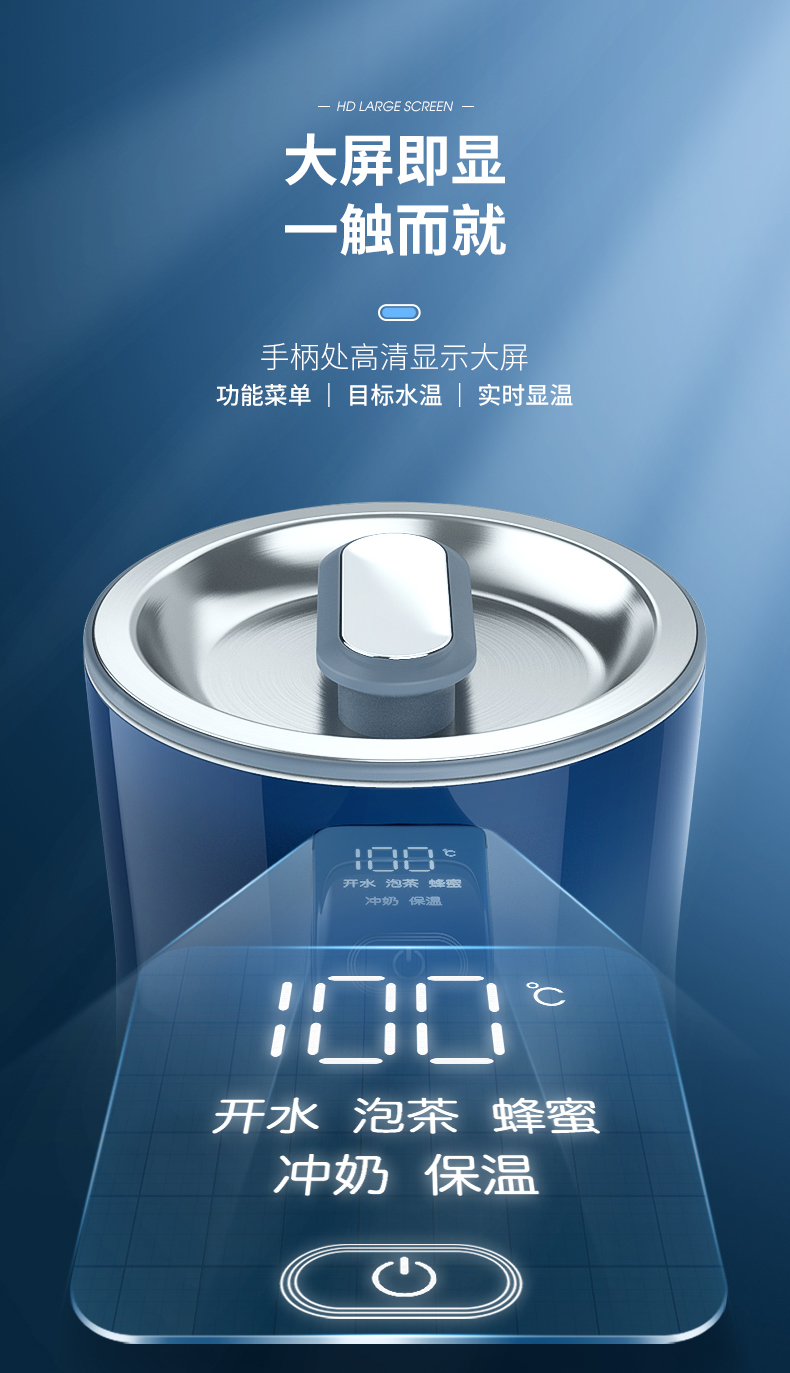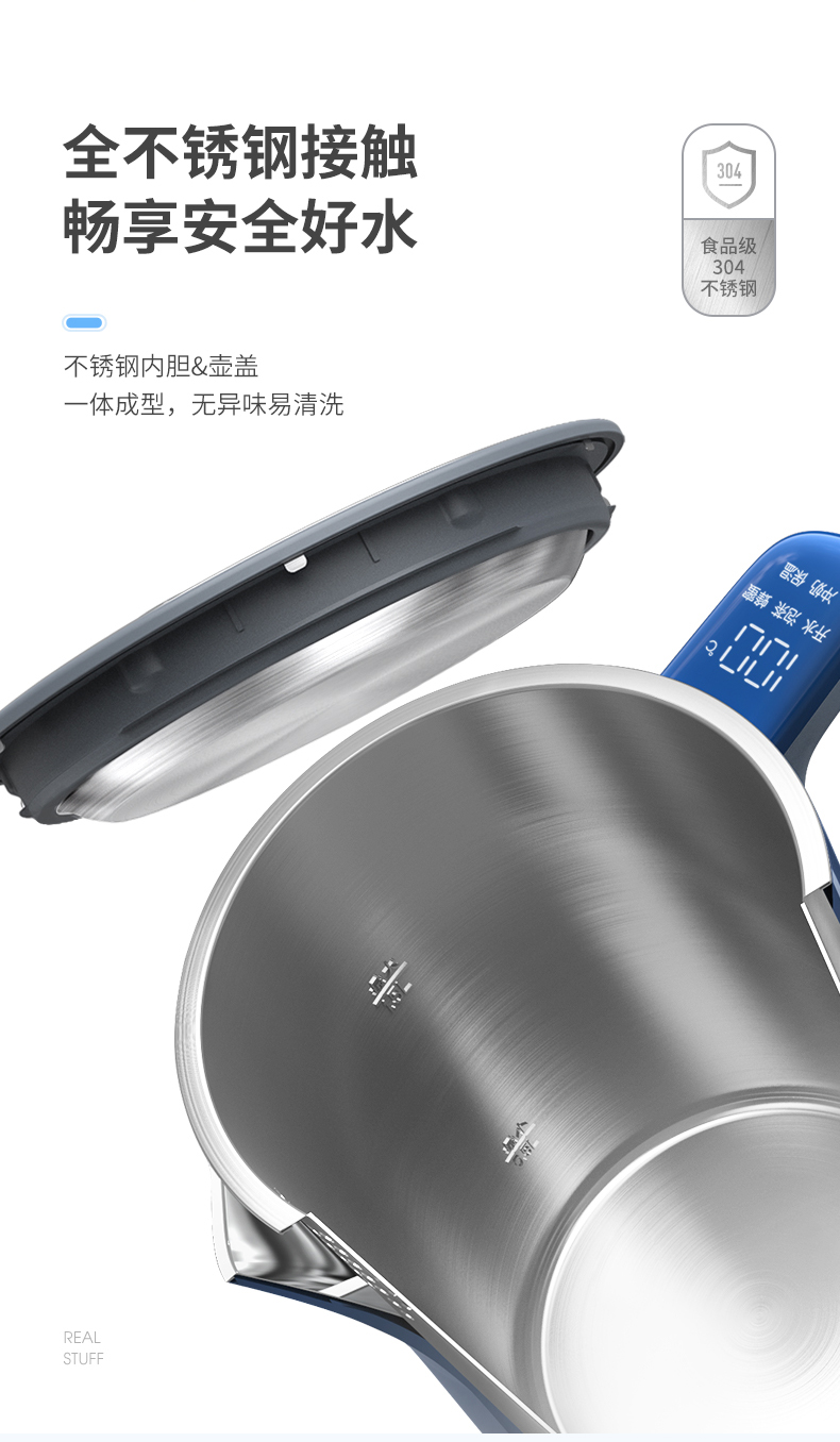 摩飞电器(Morphyrichards) 电热水壶1.5L实时显温烧水壶4档调温保温水壶MR6070 轻奢蓝