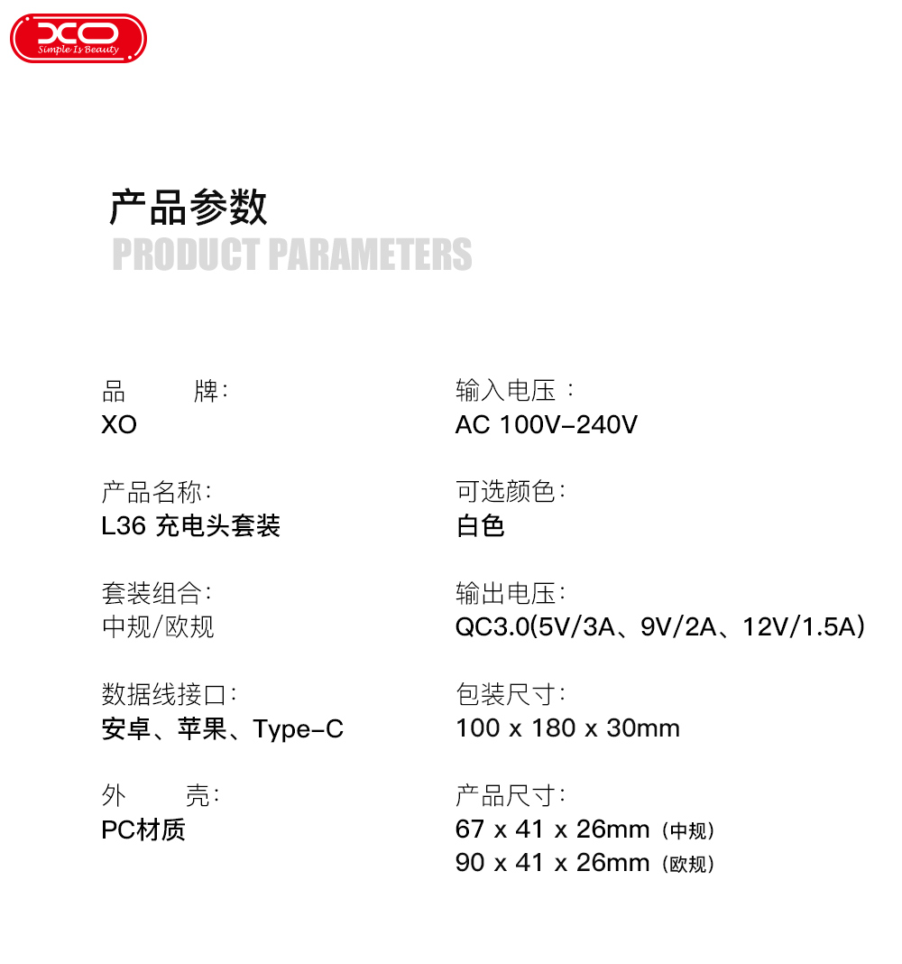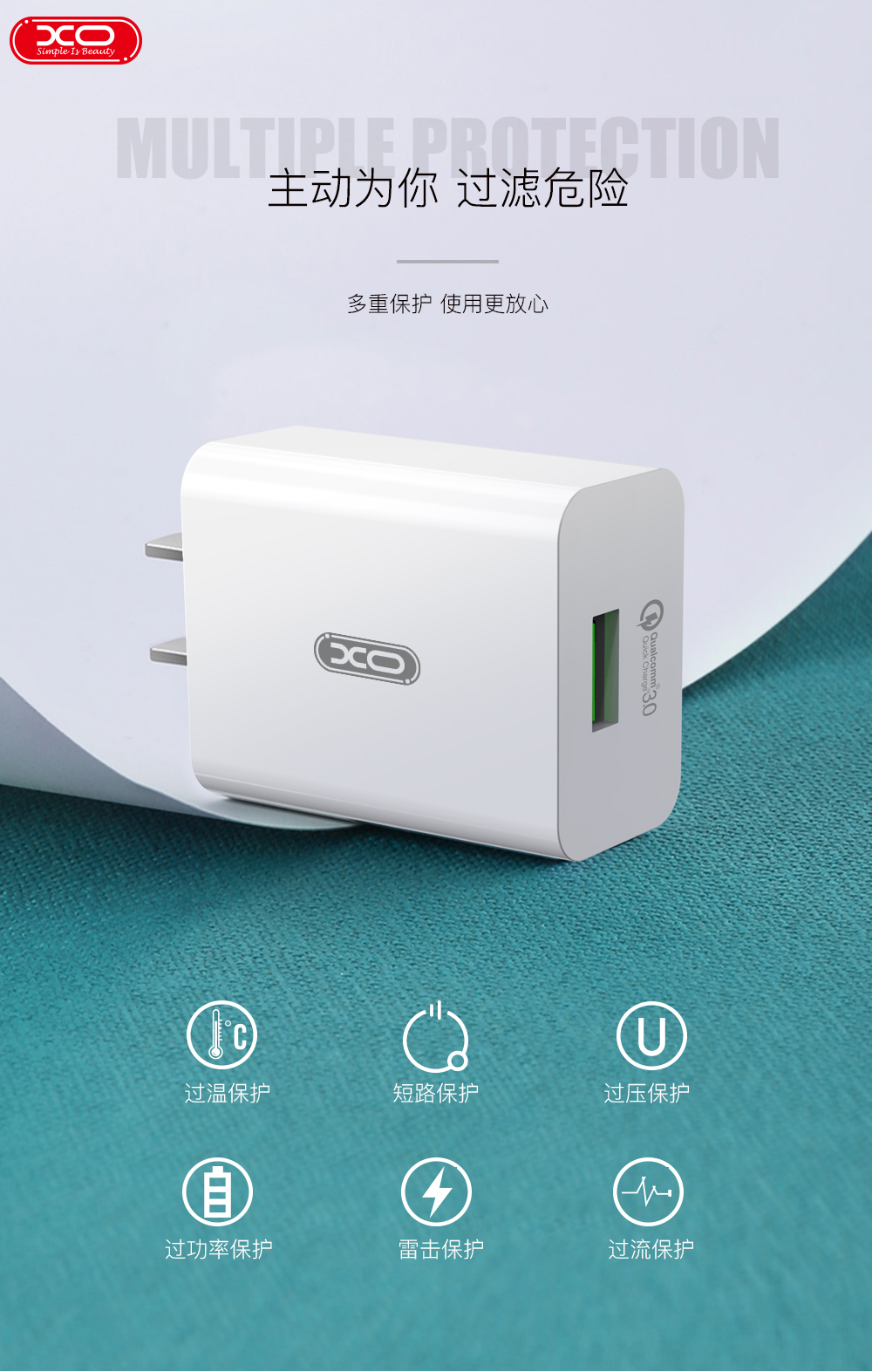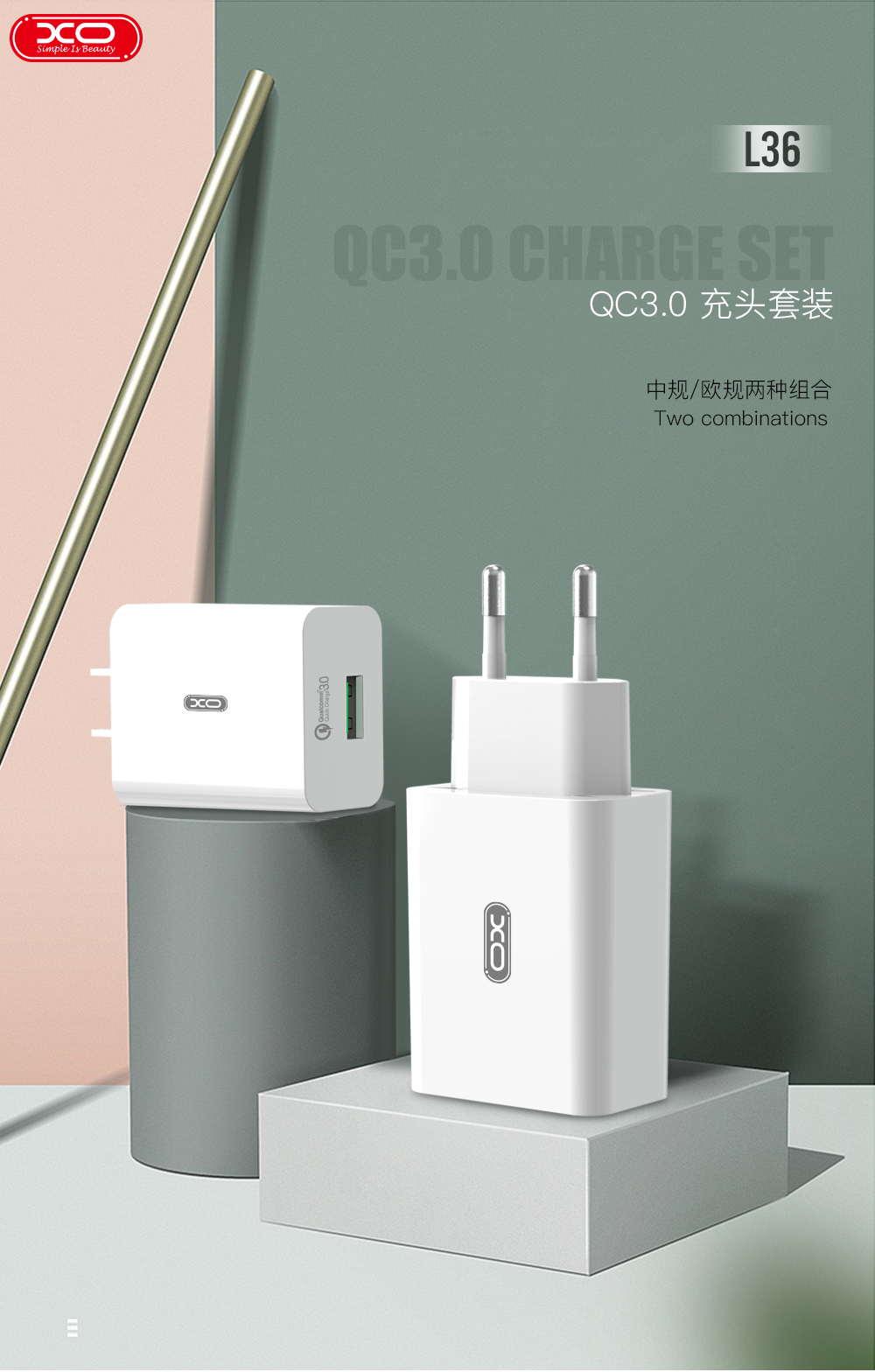 XO-L36 中规单口 QC3.0 18W直脚快充 Apple充电套装/Micro充电套装/Type-C充电套装