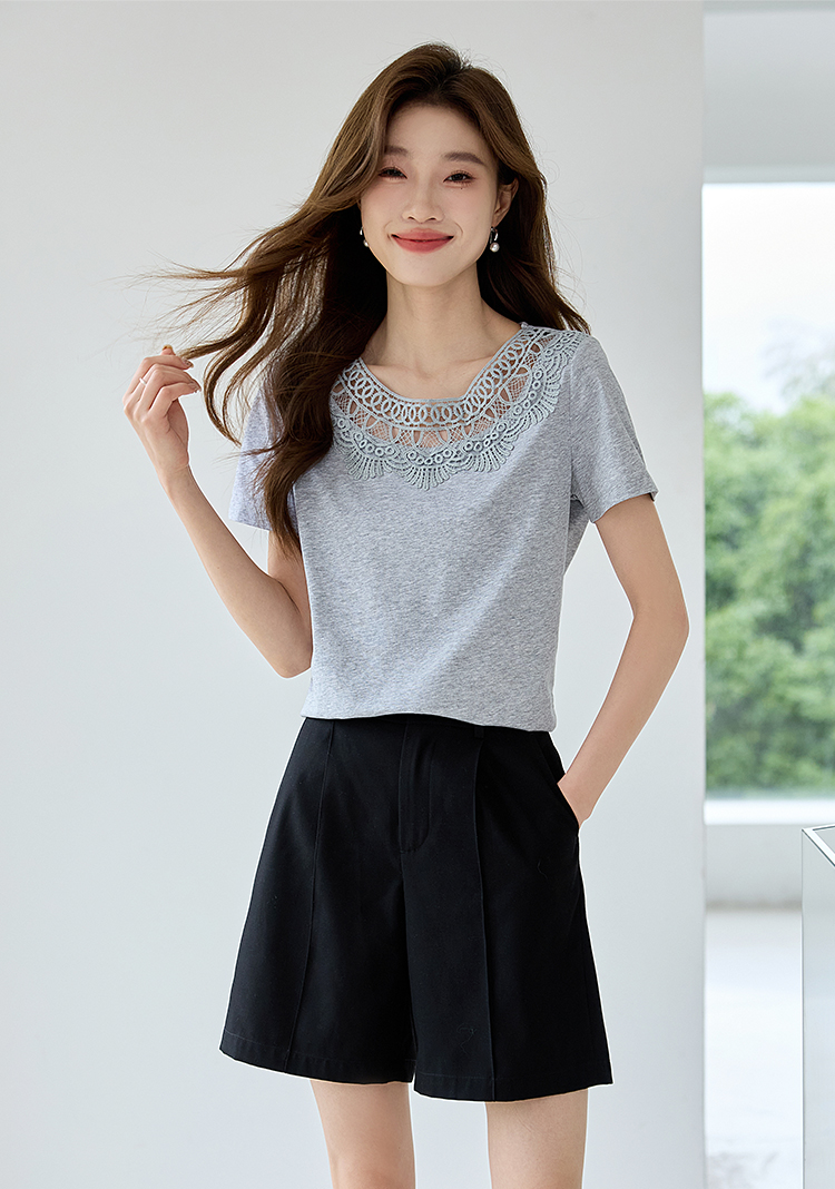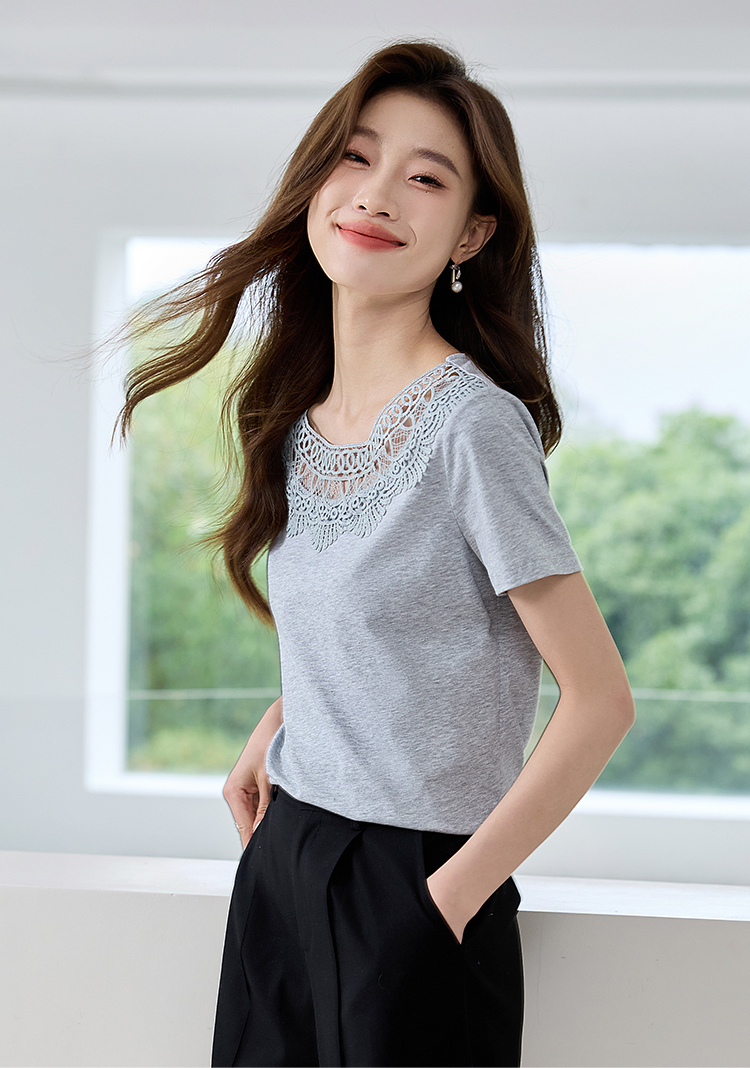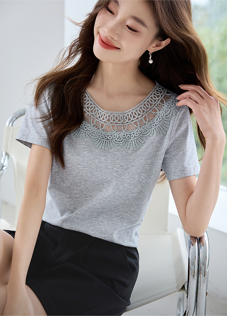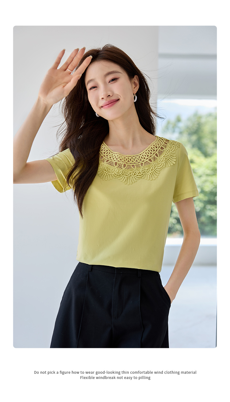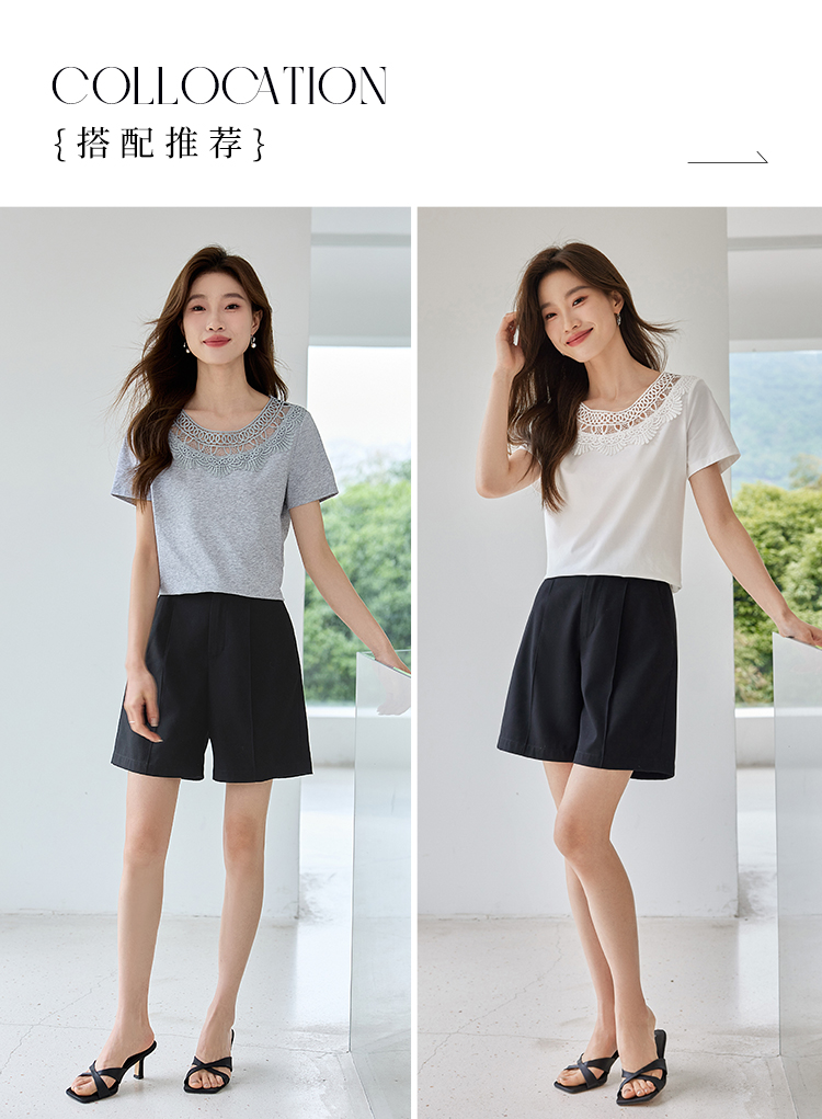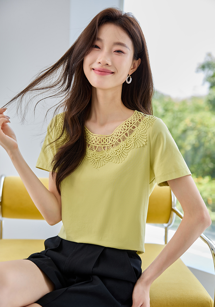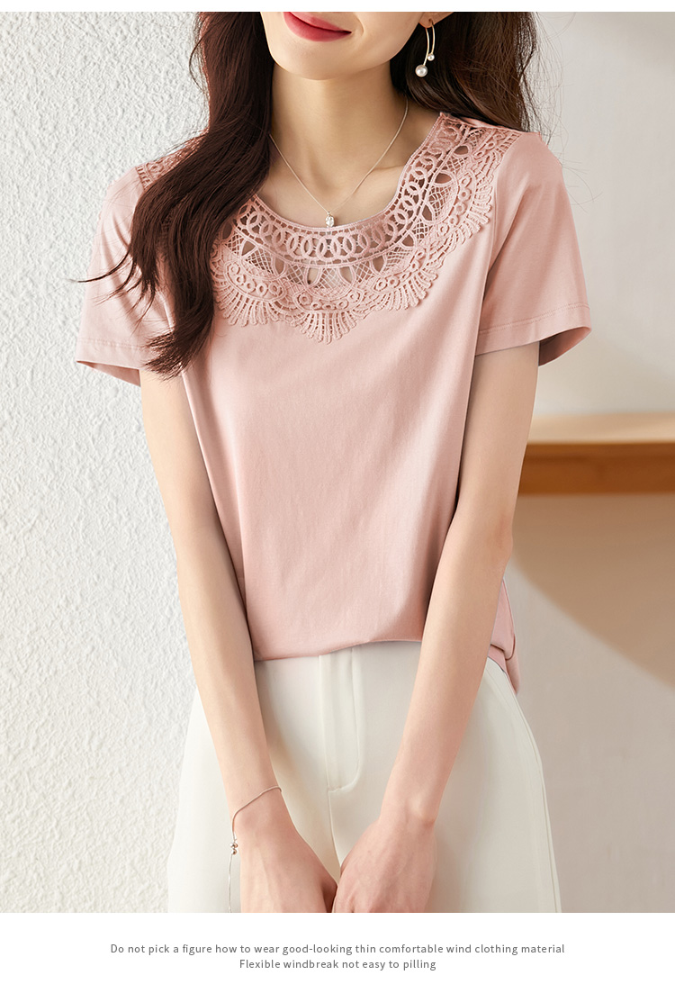 【专属特价】熙世界镂空蕾丝花纹圆领短袖T恤女气质时尚洋气小衫上衣2025夏