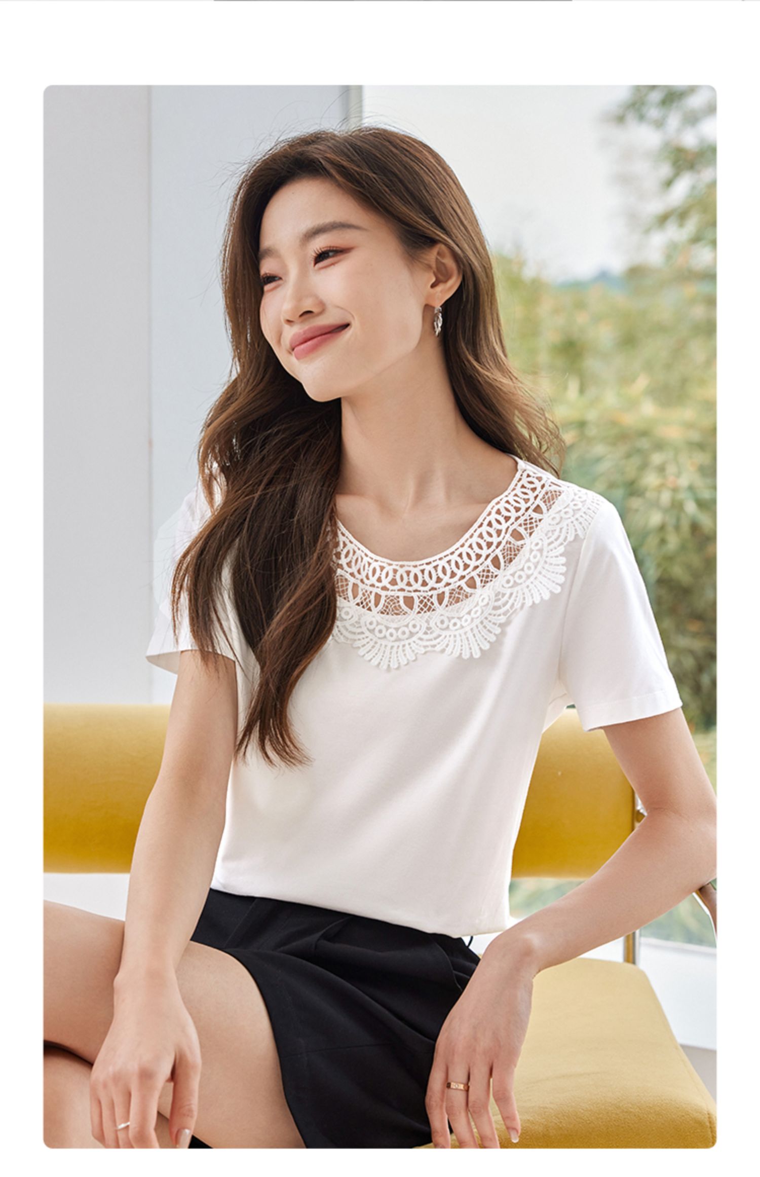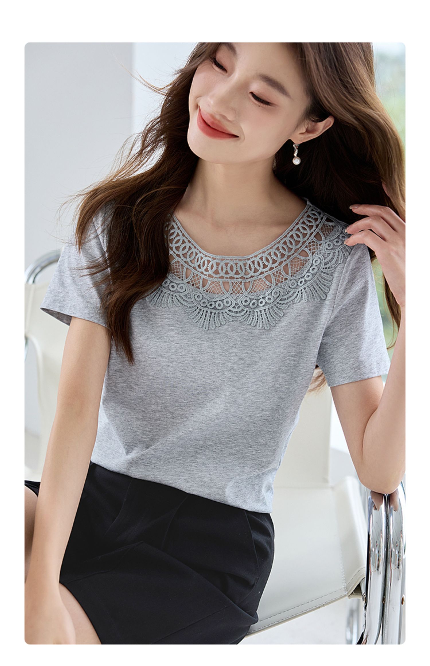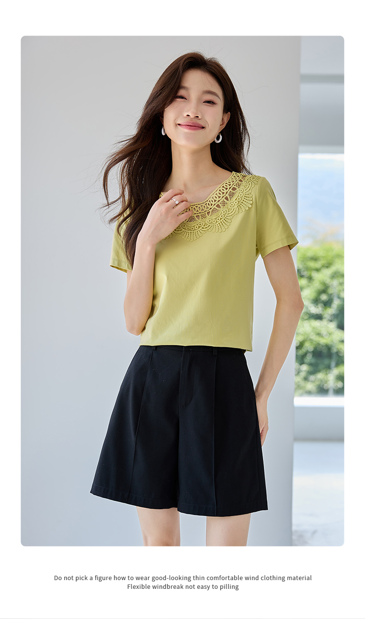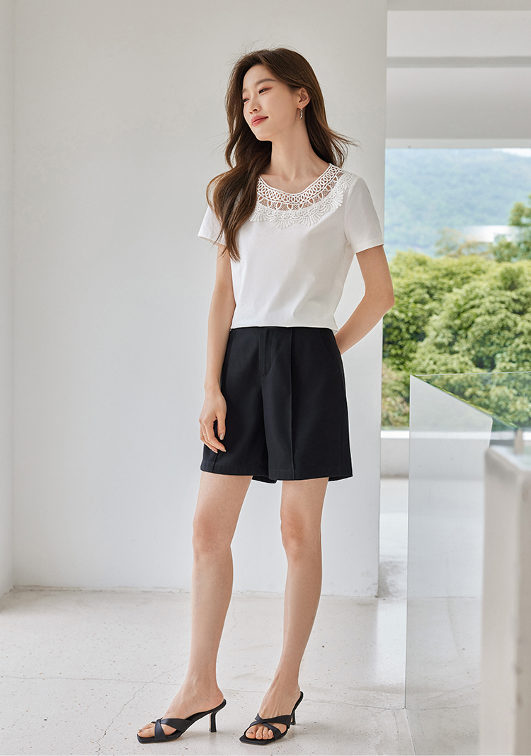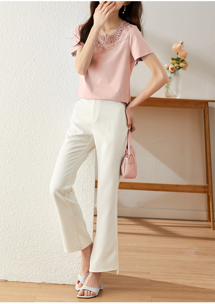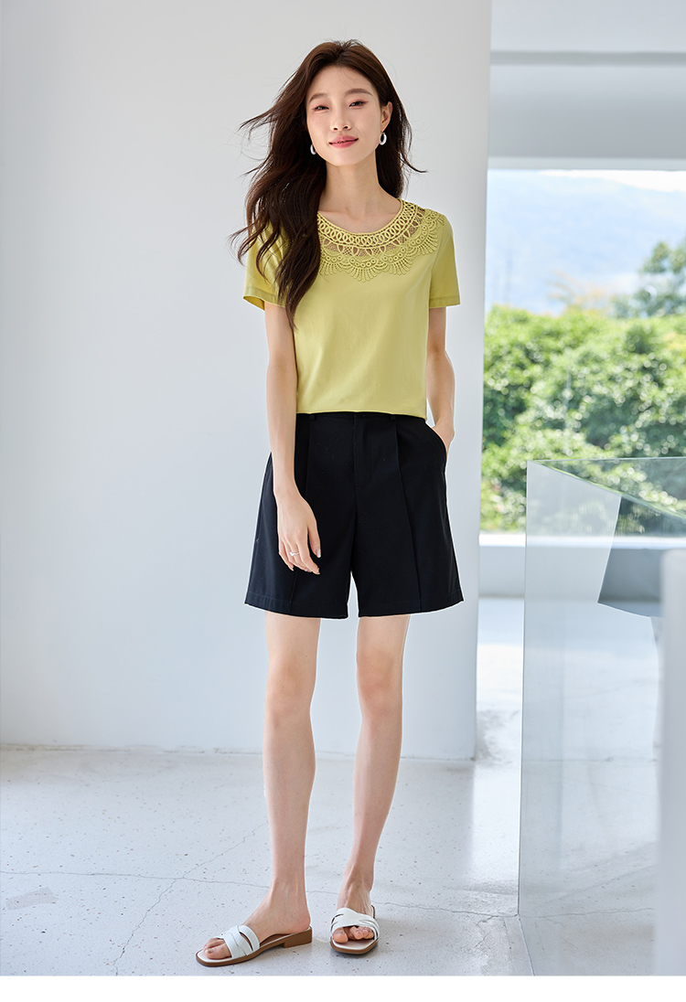 【专属特价】熙世界镂空蕾丝花纹圆领短袖T恤女气质时尚洋气小衫上衣2025夏
