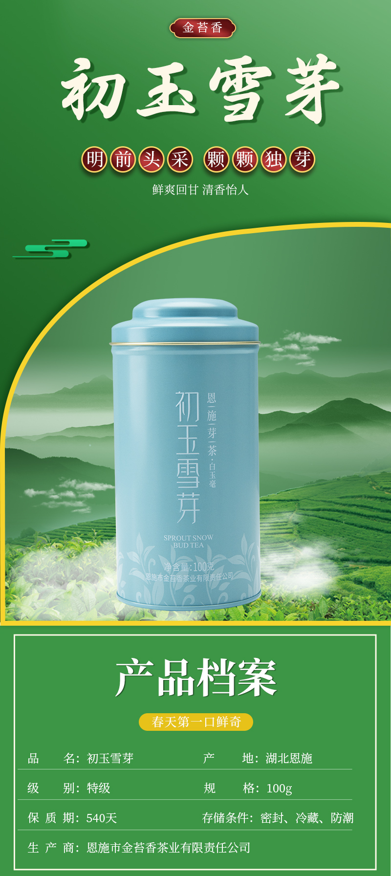 【新茶】恩施 金苔香 初玉雪芽 (简易凸罐)100g/罐