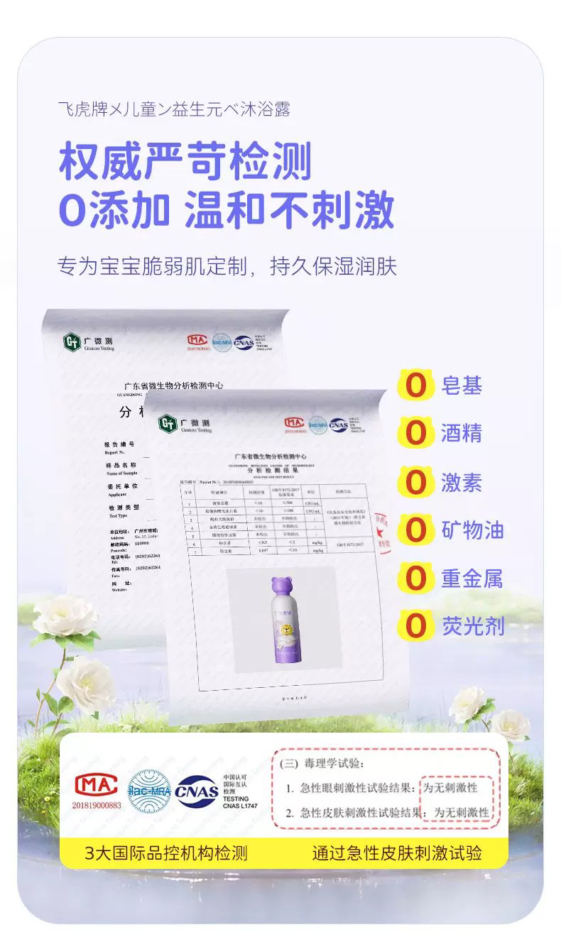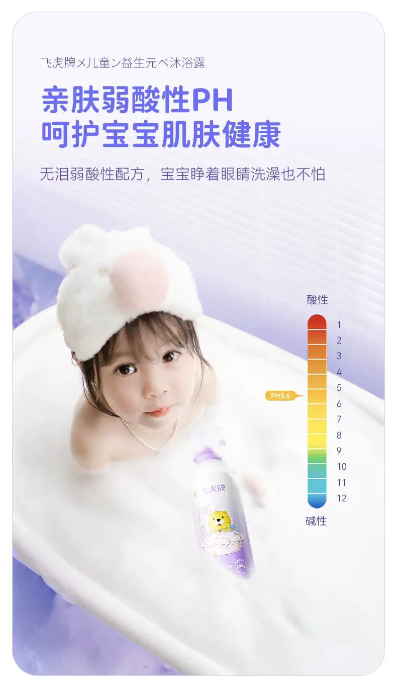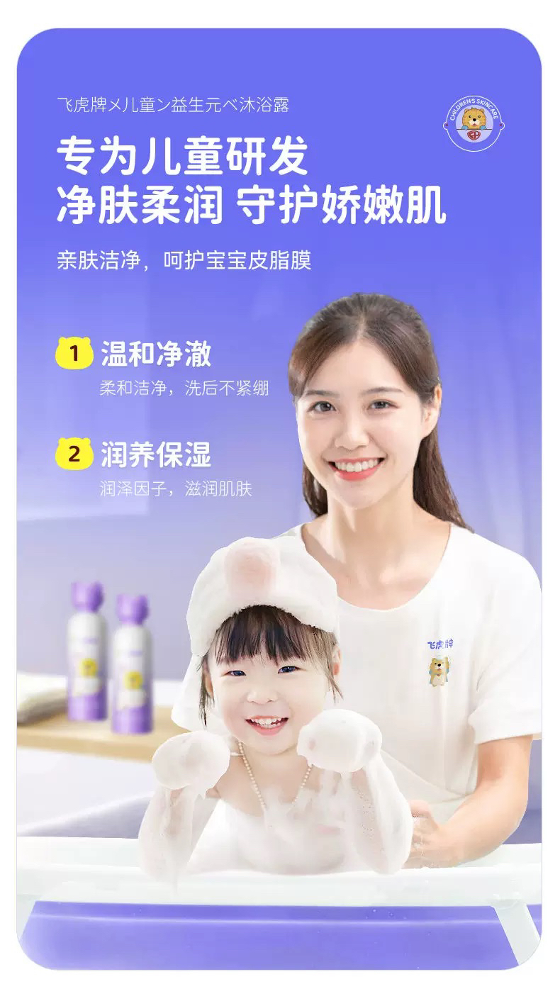 飞虎牌 儿童益生元慕斯沐浴露400ml