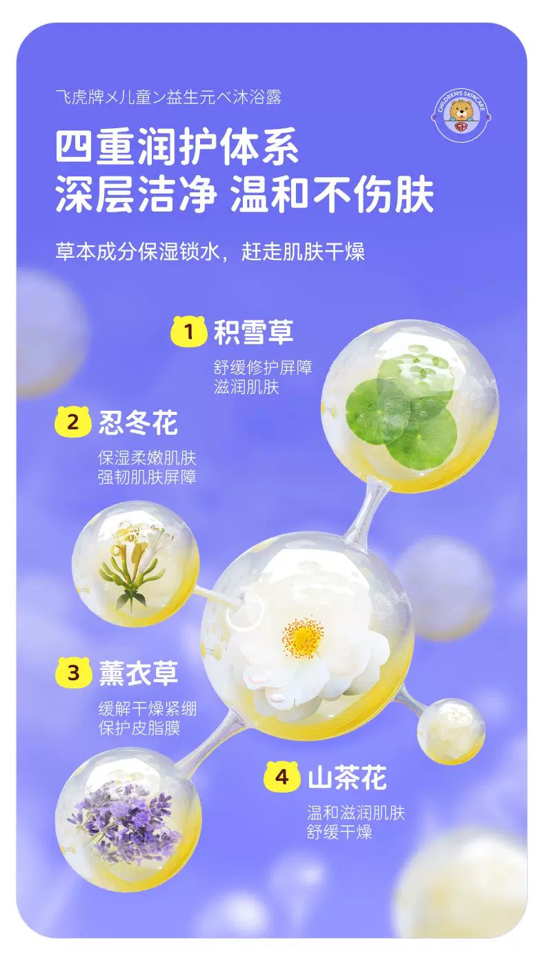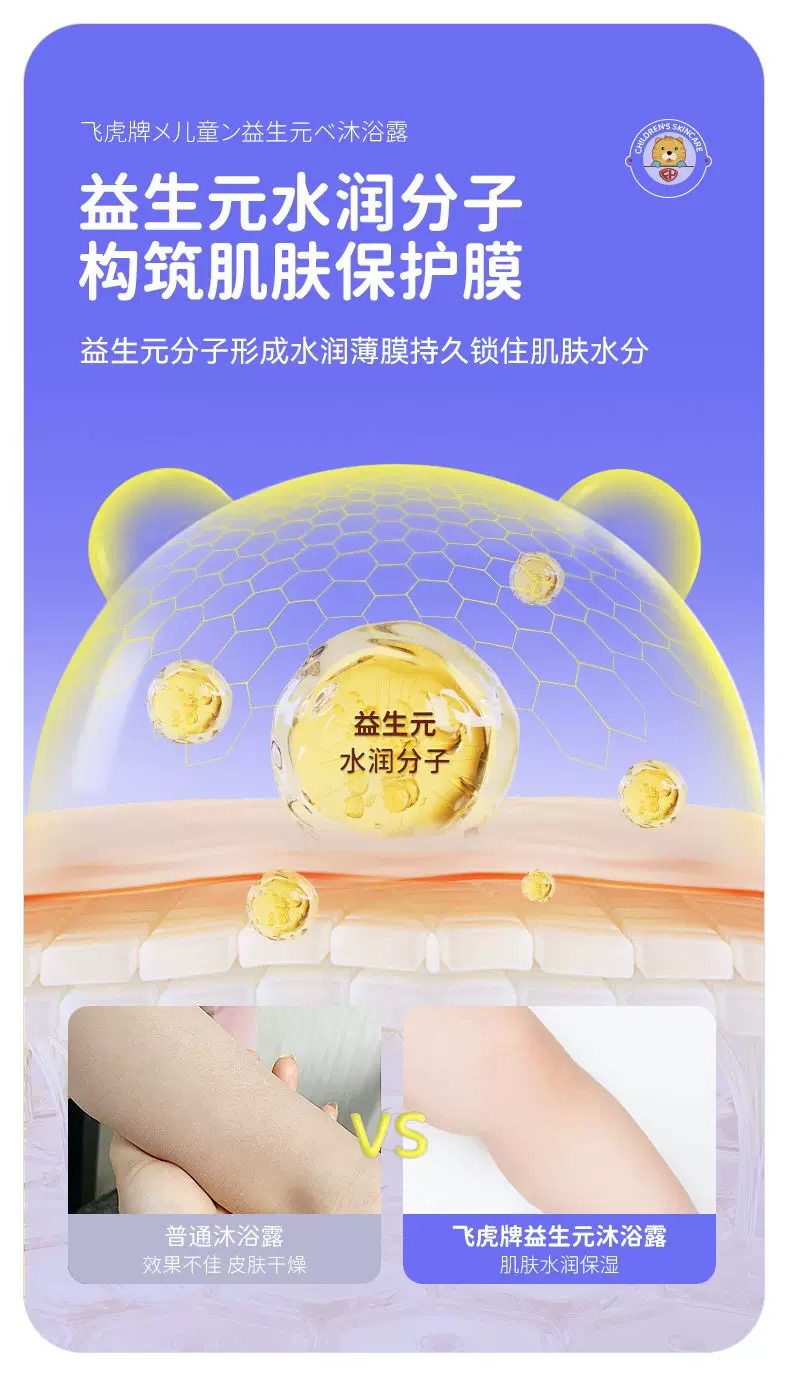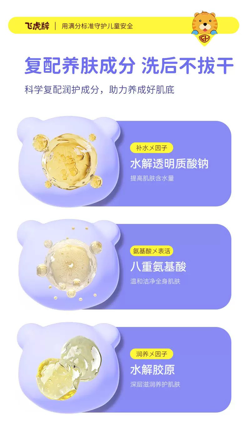 飞虎牌 儿童益生元慕斯沐浴露400ml