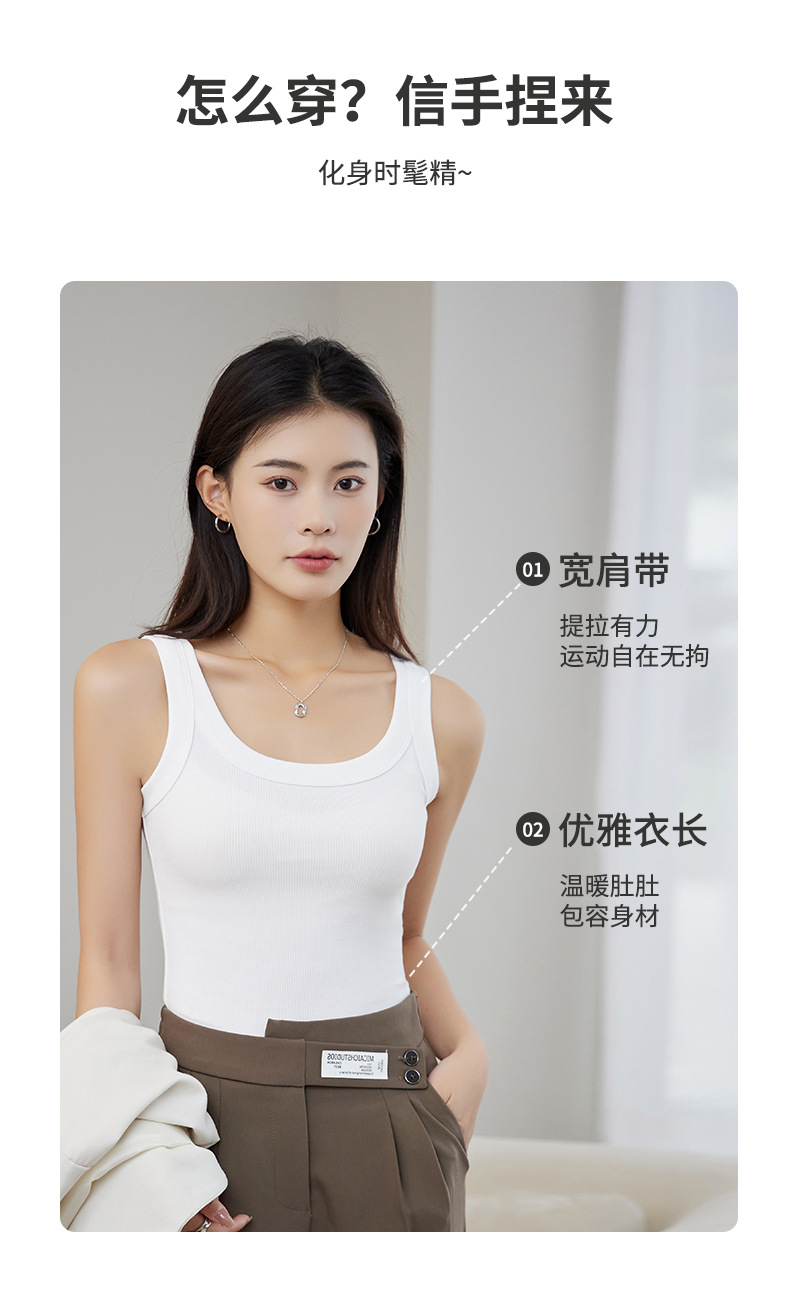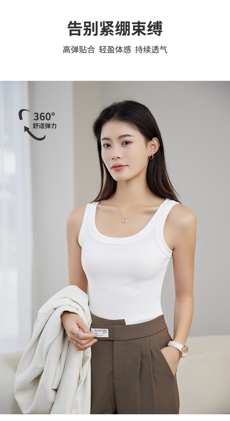 「三色可选!弹力舒适」纯棉吊带背心女内搭打底螺纹工字防走光无袖遮副乳夏外穿针织上衣