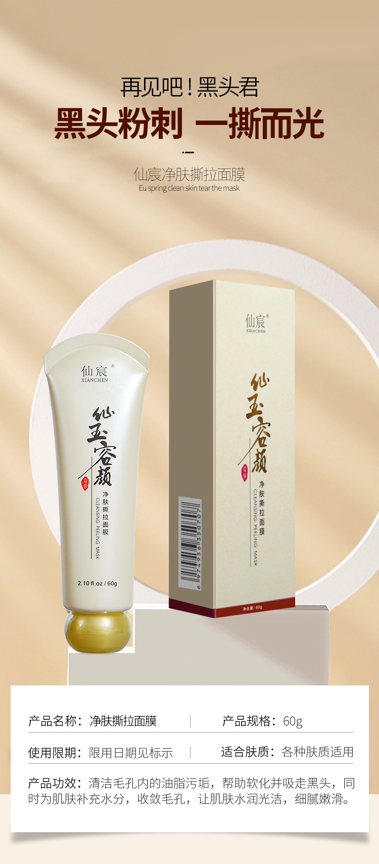 【4支立减40】仙玉容颜净肤撕拉面膜