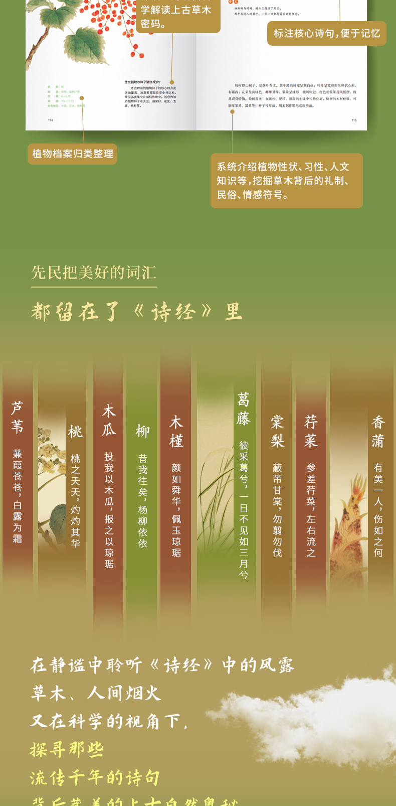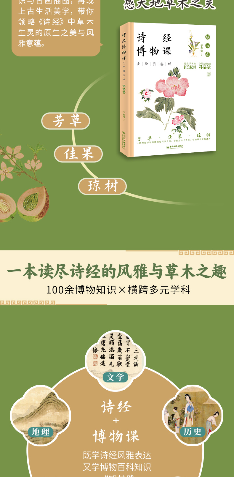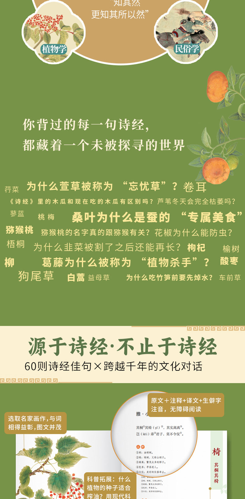【官方旗舰店】诗经博物课(手绘图鉴版):一套集诗章风雅、古画清韵、博物闲趣于一体的国学读本。