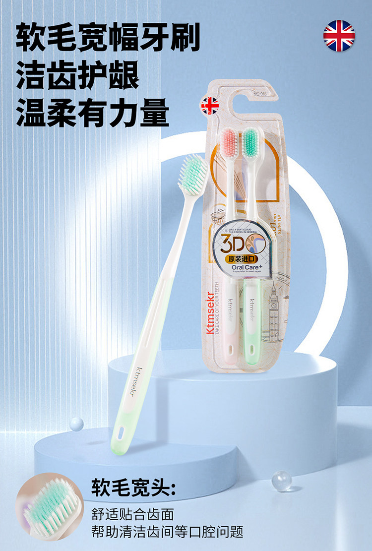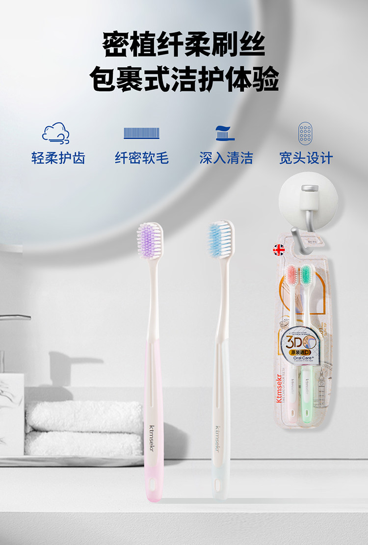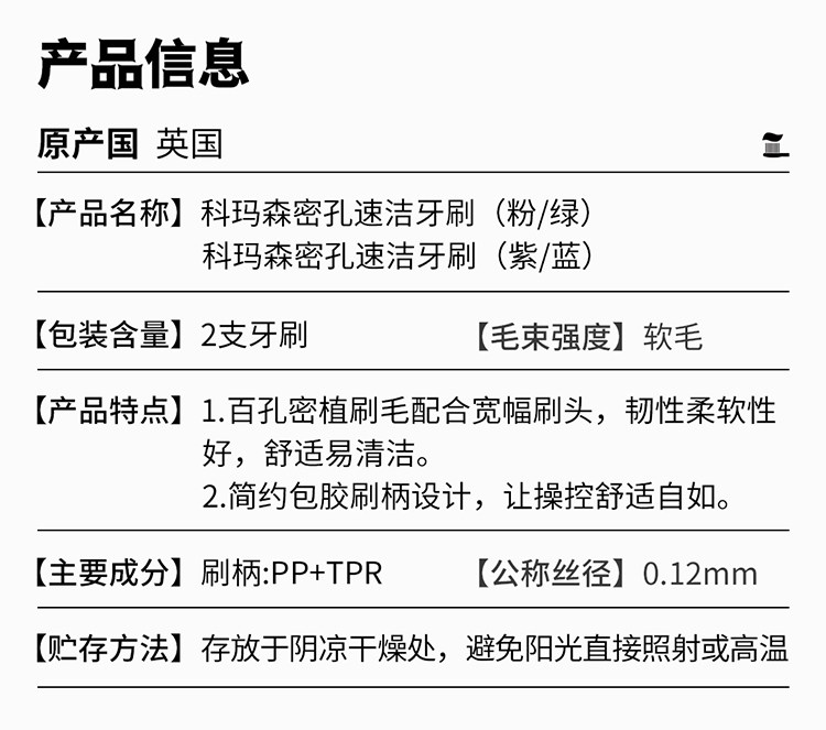 科玛森 密孔速洁牙刷双支装(颜色随机)