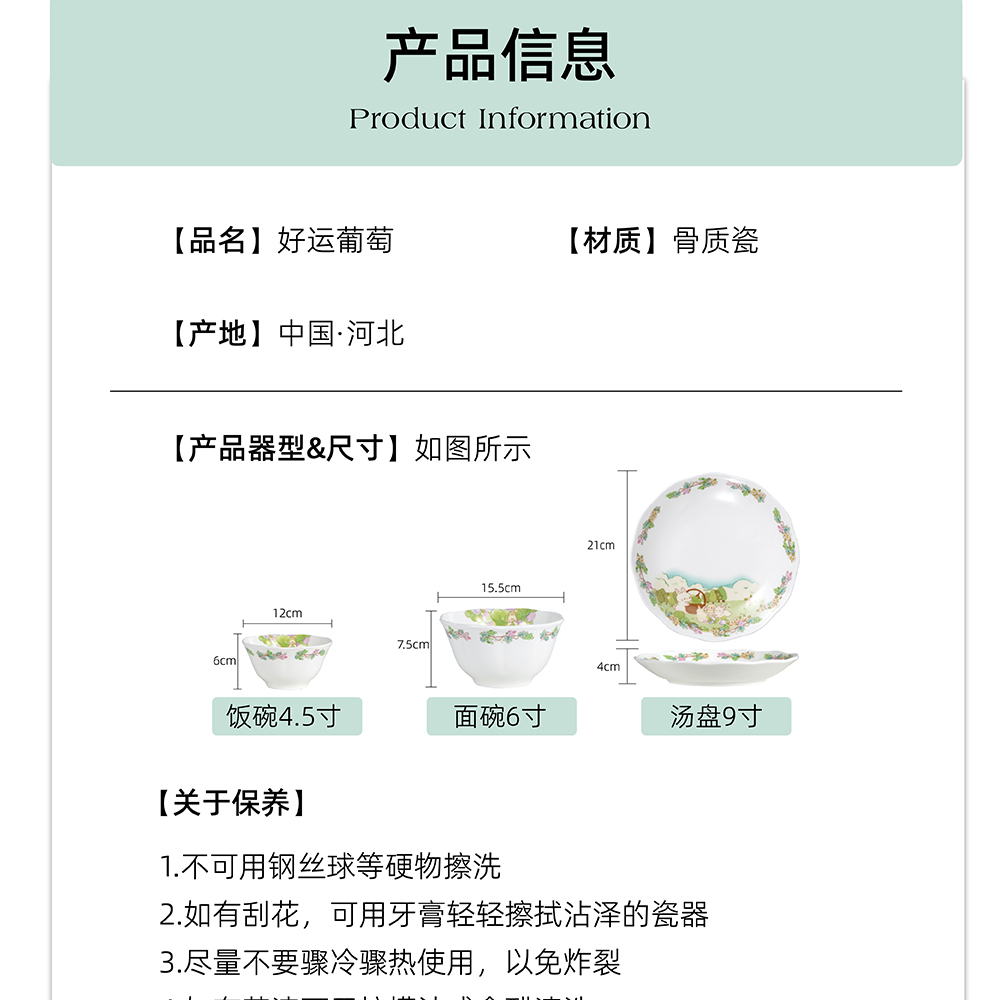 骨瓷餐具套装 | 好运葡萄系列骨瓷套装礼盒款 四季三餐 愿你常伴