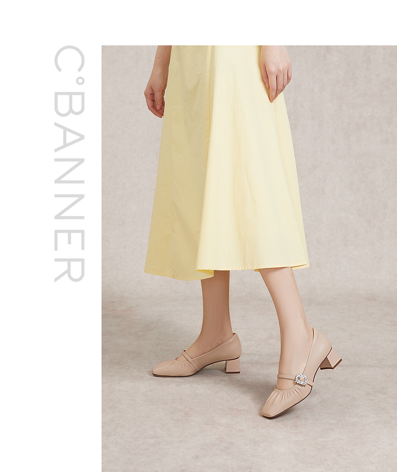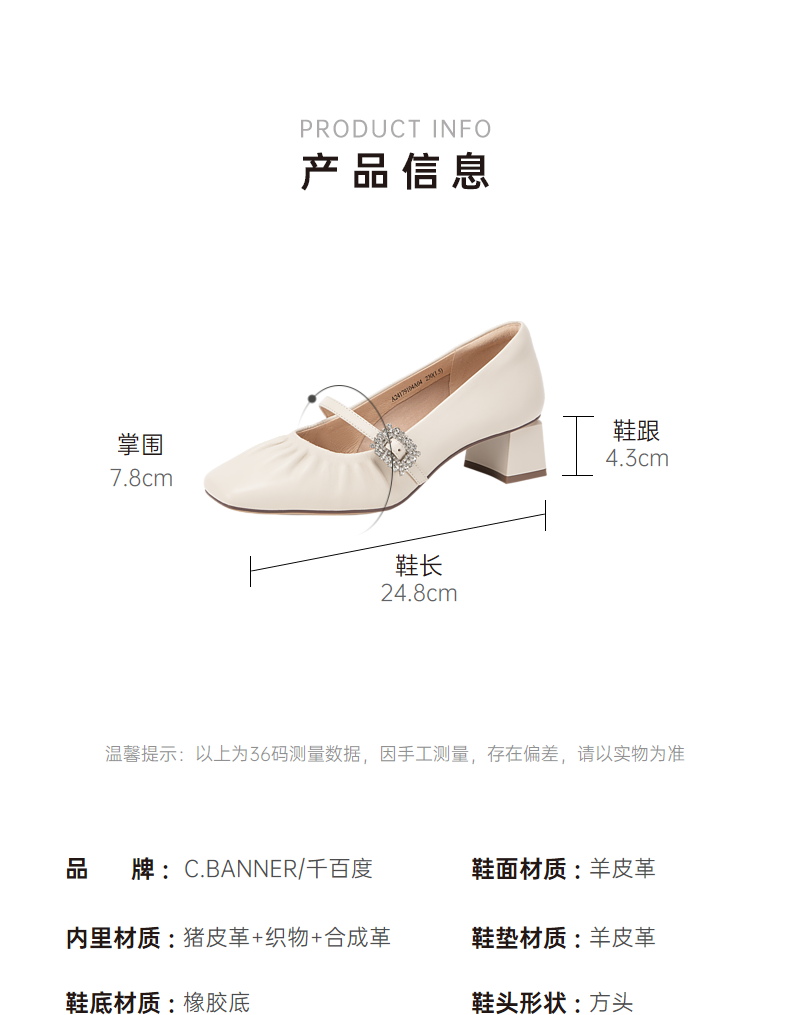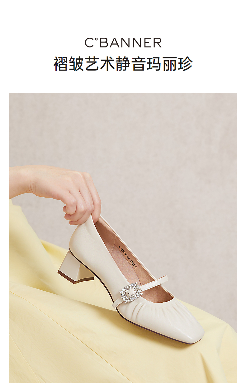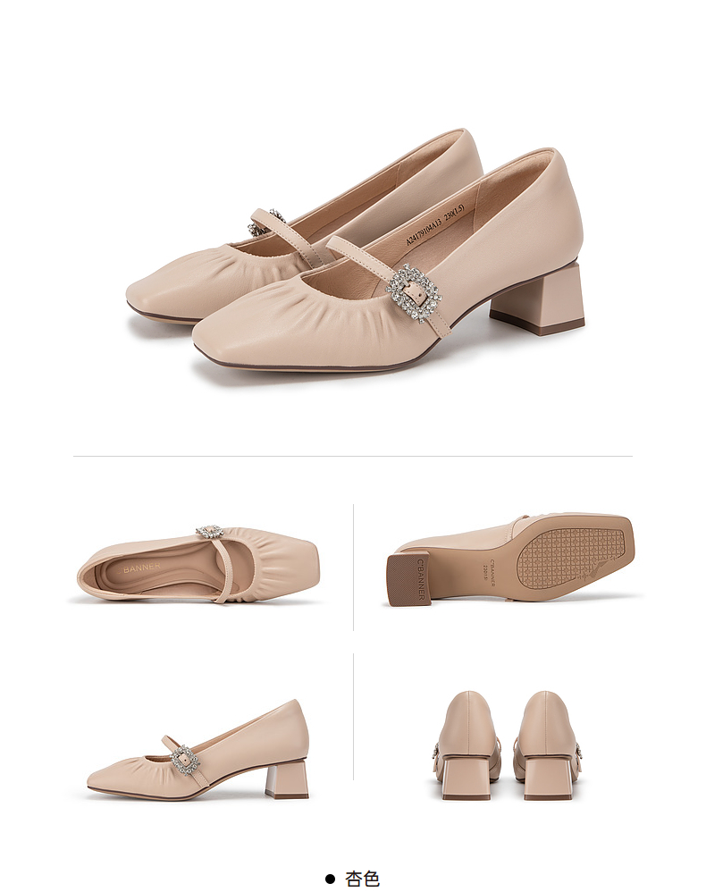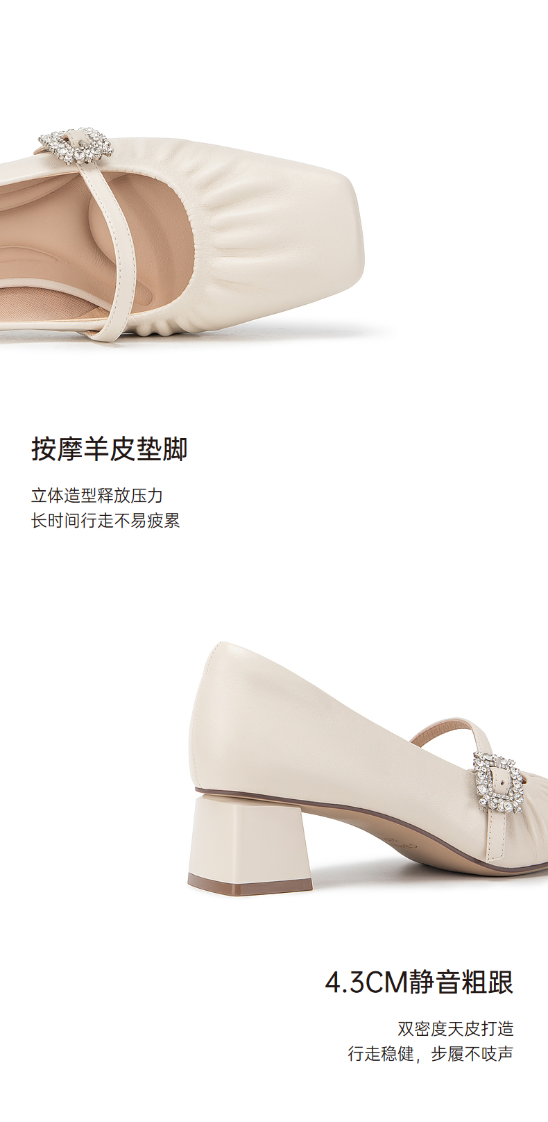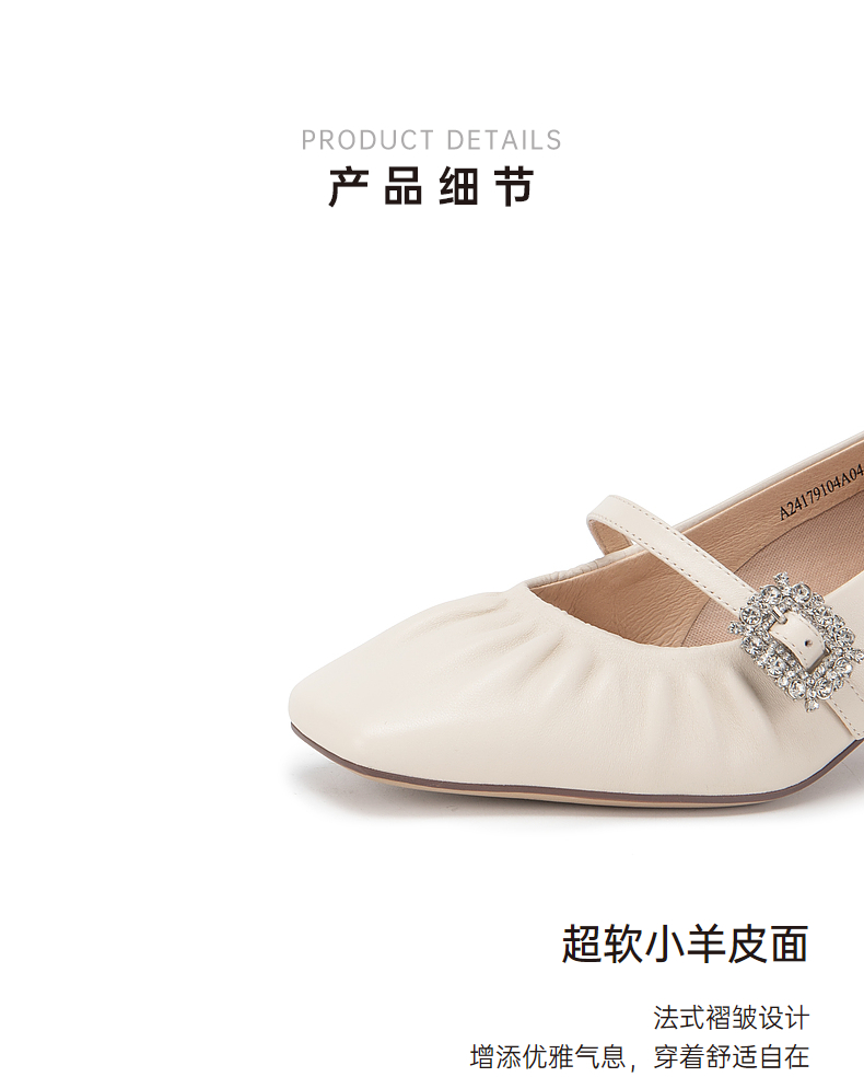 【静音系列】千百度法式褶皱粗低跟春季通勤羊皮单鞋女A24179104