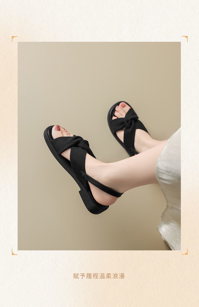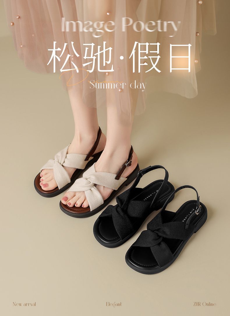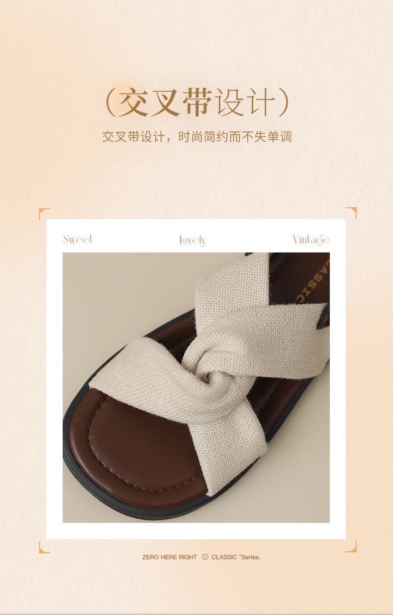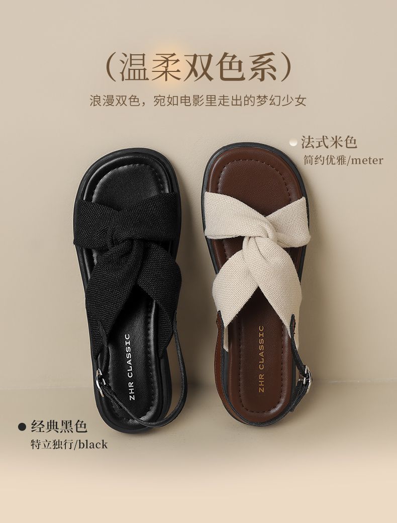 ZHR则则轻便平底凉鞋女2025夏季新款宽脚爆款拖鞋交叉带沙滩女鞋