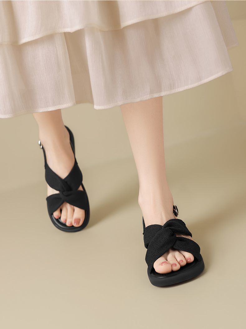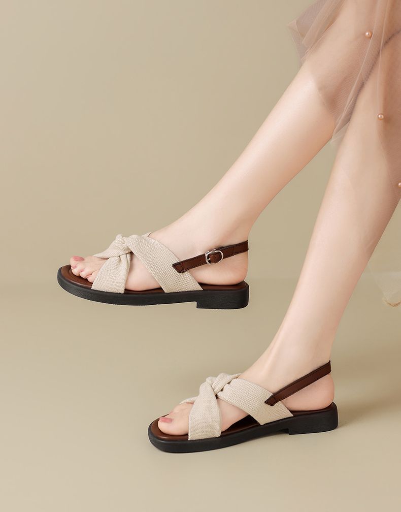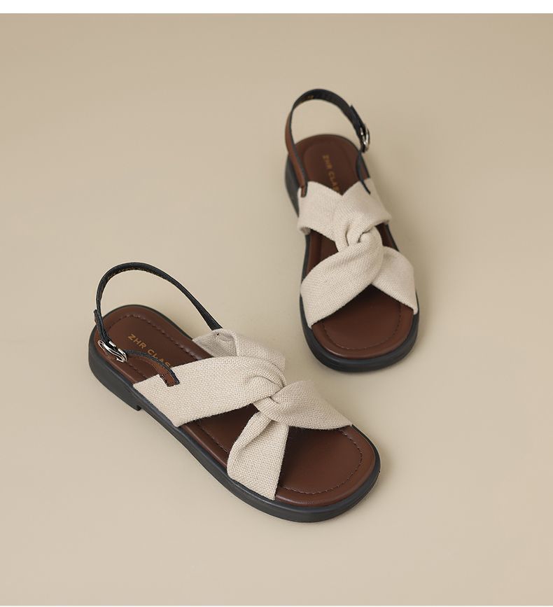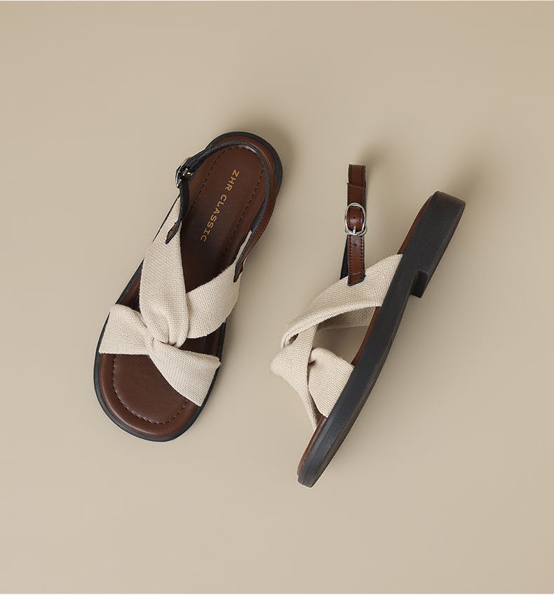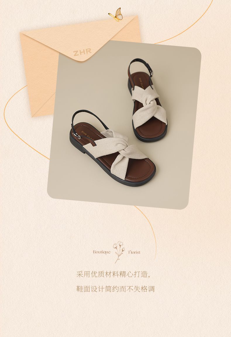 ZHR则则轻便平底凉鞋女2025夏季新款宽脚爆款拖鞋交叉带沙滩女鞋