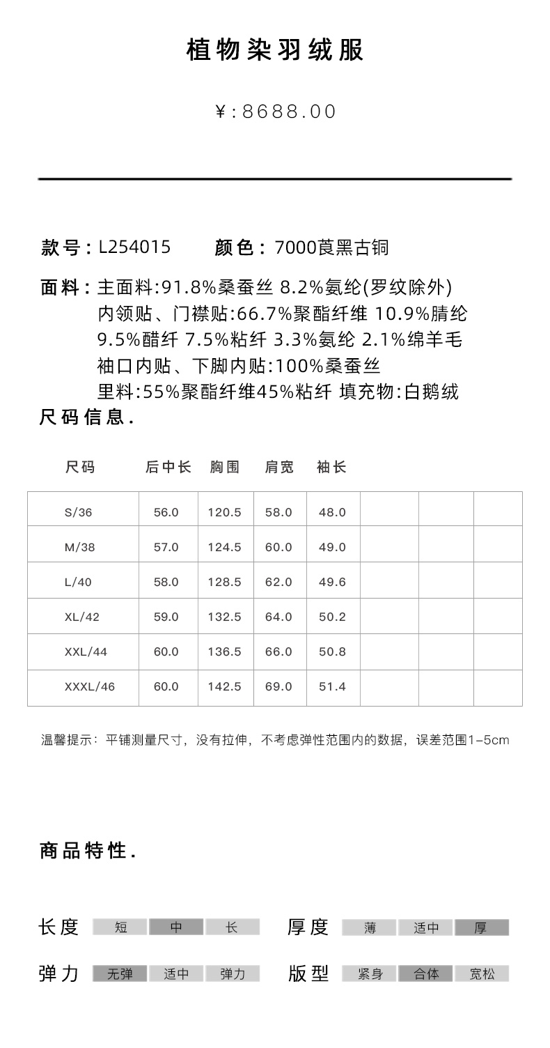 TANGYcollection2025冬季新品商场同款莨绸植物染羽绒服L254015