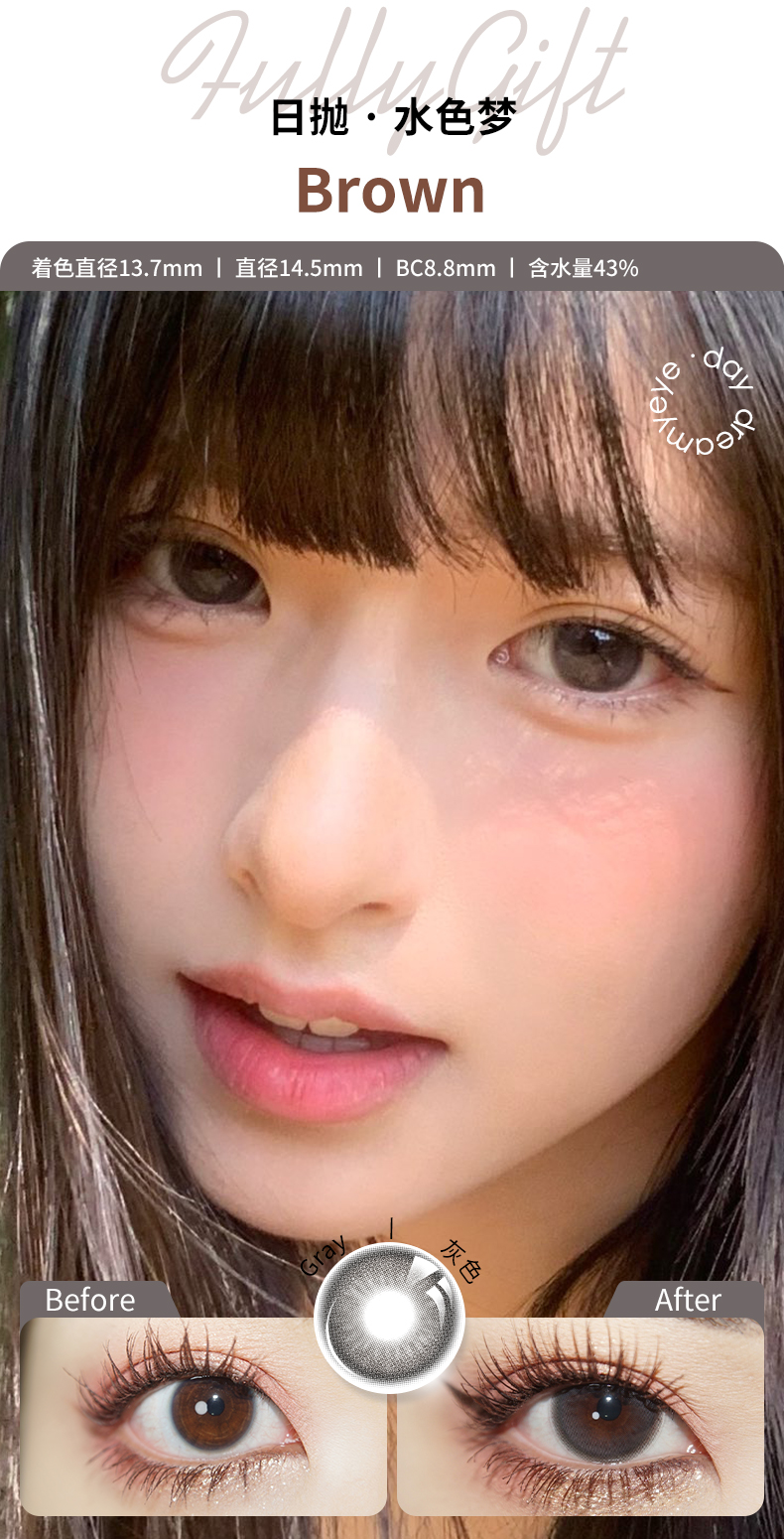 - DREAMYEY彩色隐形眼镜,创立于2009年。与国外知名隐形眼镜制造厂商达成长期战略合作,采用国际顶尖制作工艺与材质,打造出健康舒适的彩色隐形眼镜。