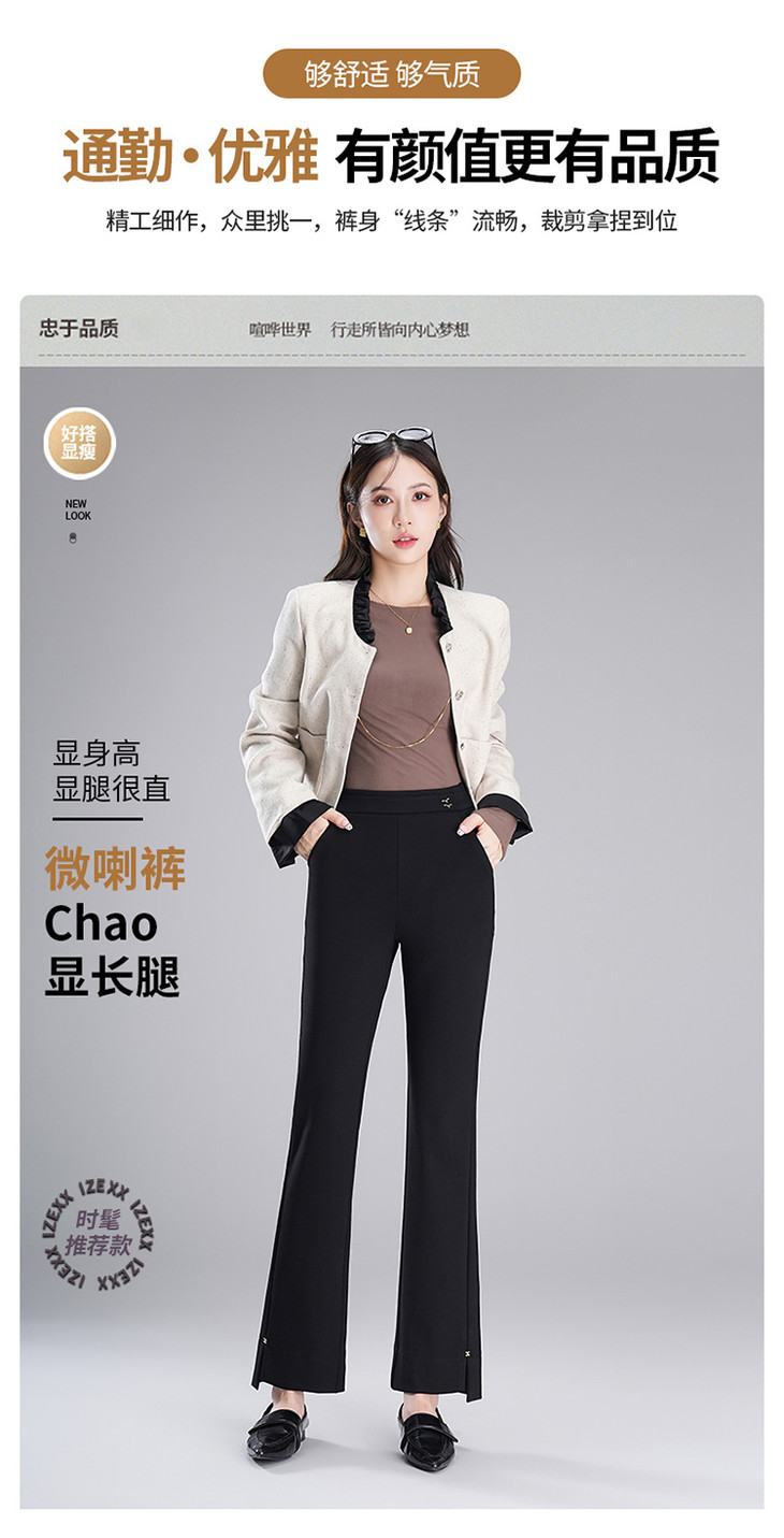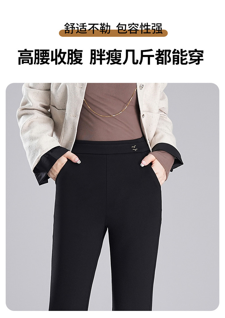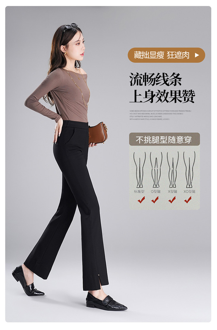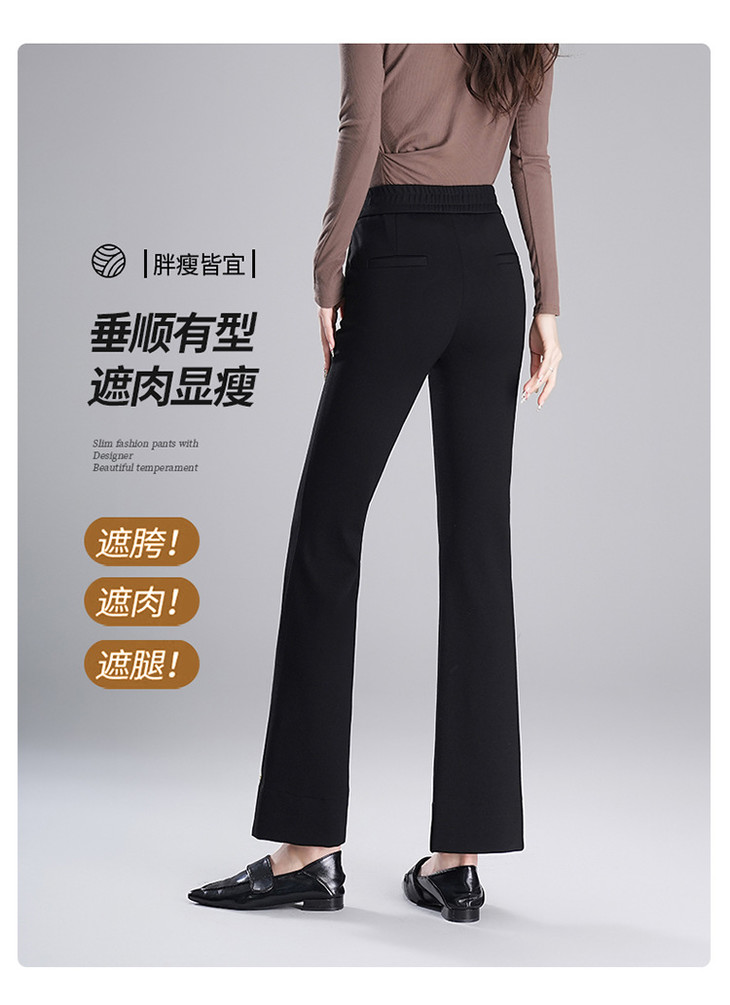 松紧高腰微喇裤秋季时尚,气质休闲裤黑色大码长款喇叭裤MYX-5505