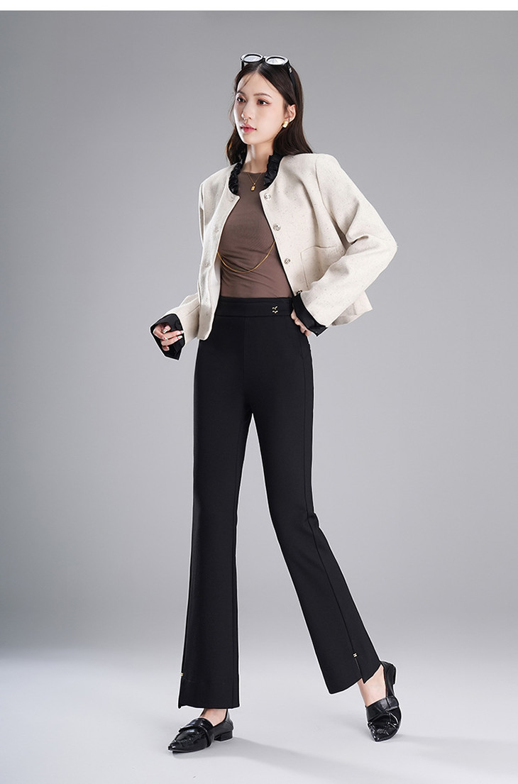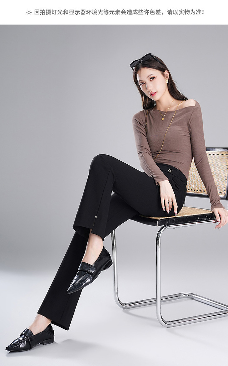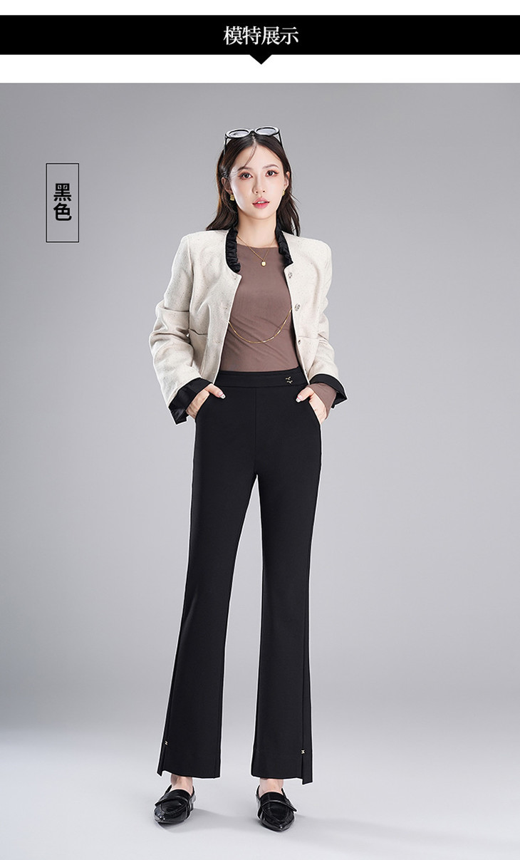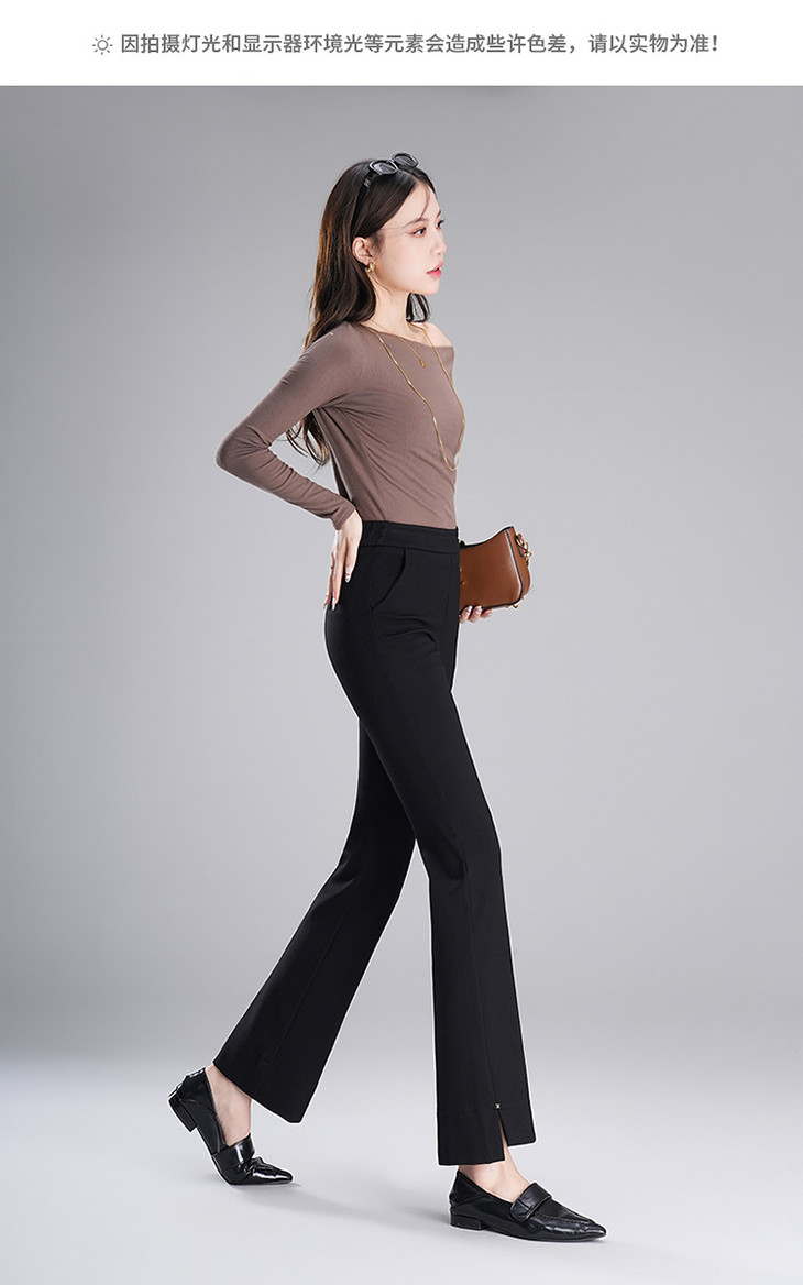 松紧高腰微喇裤秋季时尚,气质休闲裤黑色大码长款喇叭裤MYX-5505