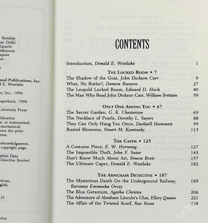 When plotting a murder (figuratively speaking), the mystery writer has at hand any number of M.O.'s including such tried and true conventions as the locked room, the unbreakable alibi, the double bluff, the mistaken identity, and many others. Indeed, one of the challenges (and greatest sources of pleasure) for a mystery writer is to visit a well-known plot construction - to try their hand at "the locked room" or "the caper" - perhaps to honor a writer or story they admire, perhaps to try to top them. Now, in Murderous Schemes, renowned mystery writer Donald E. Westlake and J. Madison Davis (current president of the International Association of Crime Writers) offer an illuminating look at eight such mystery conventions, illustrating each with four short stories written by some of the masters of the form. The resulting collection of thirty-two tales spans a hundred and fifty years of crime fiction and includes virtually every style imaginable, from the hard-boiled detective story to the cozy armchair mystery.