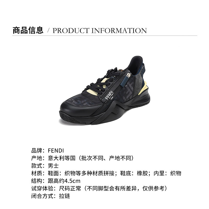 FENDI/芬迪【22春夏新款】男士织物等多种材质拼接Fendi Flow休闲运动鞋跑鞋FF图案提花 7E1519 AHIJ