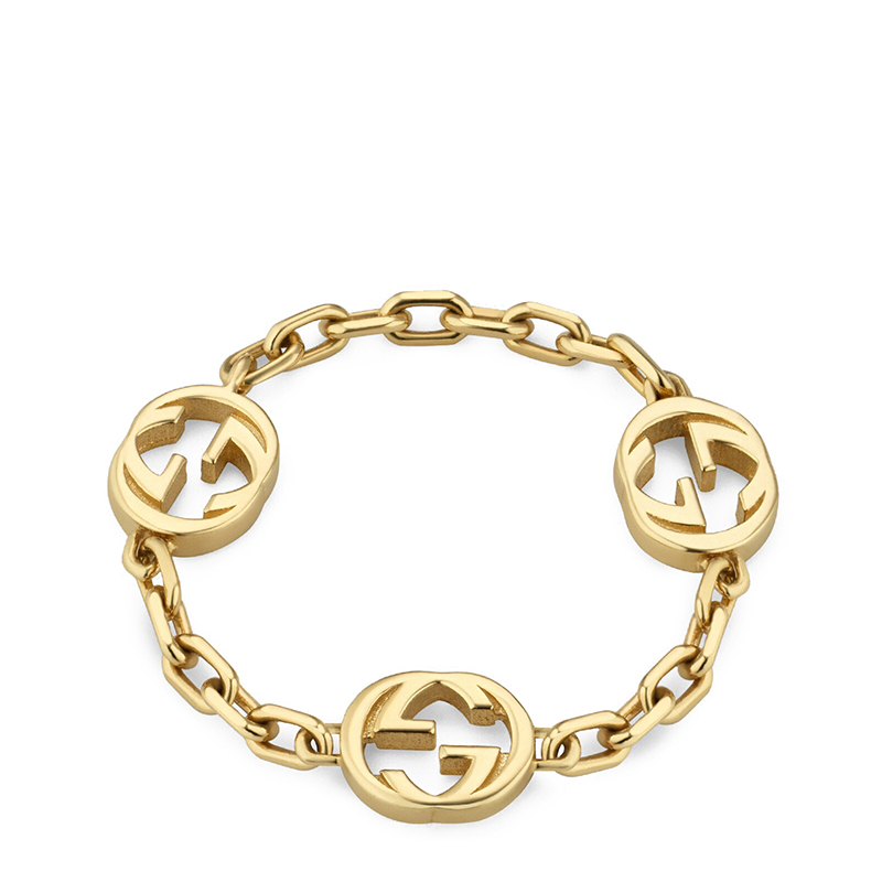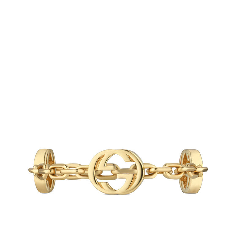 这款戒指由一条柔韧的链条组成,令人联想到复古风格。18 克拉黄金配饰饰有 GG 细节。字母组合是品牌具标志性的符号之一。它不断发展,每个季节都以新的含义丰富自己。