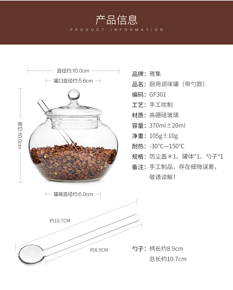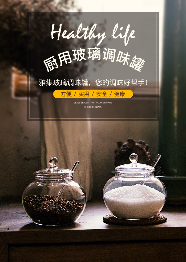 雅集玻璃调味瓶储物罐厨房用品罐佐料盒调味盒家用玻璃罐套装