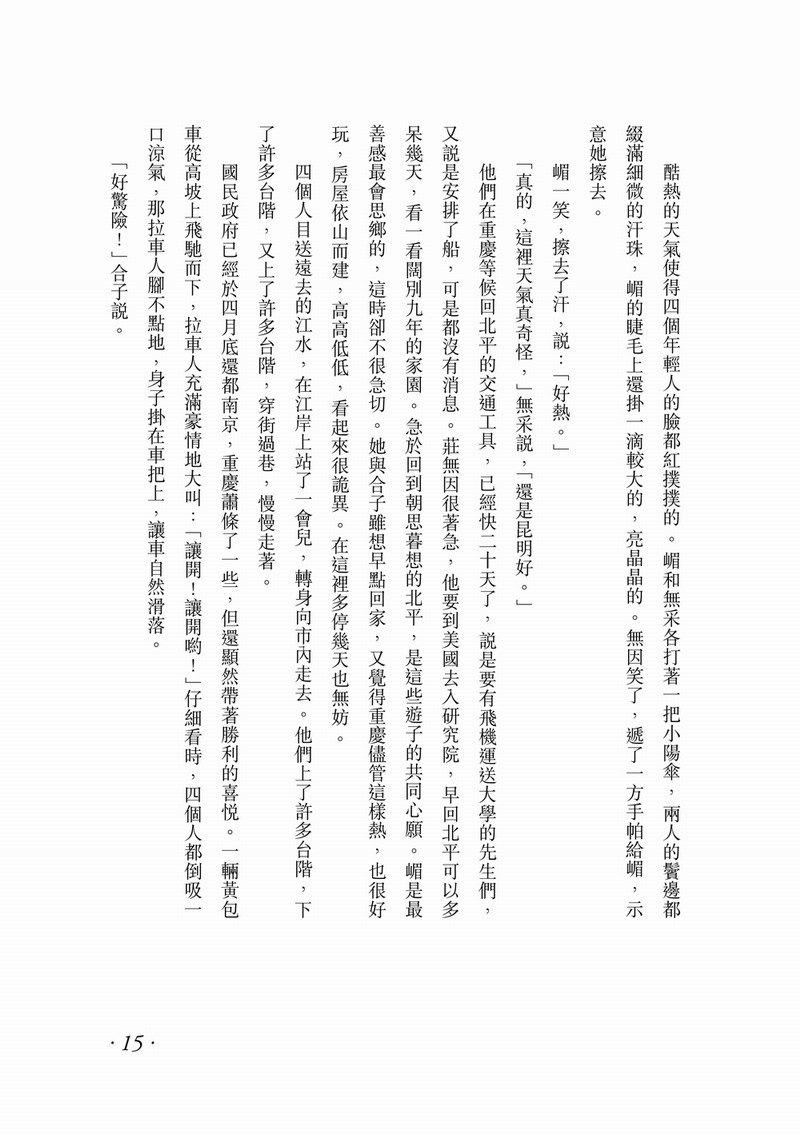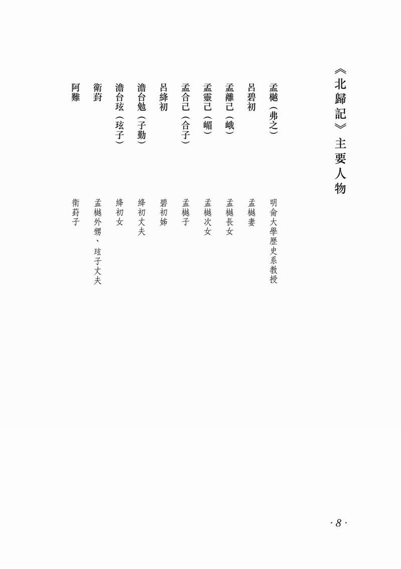 《北歸記》圍繞抗戰勝利後,明侖大學重新遷回北平而展開。多年離亂,經歷南渡、東藏、西征,盼望已久的和平生活終於到來,離別北平多年的孟樾一家和明侖大學的教授們,滿懷對和平的熱愛,投入教育和家園的重建。