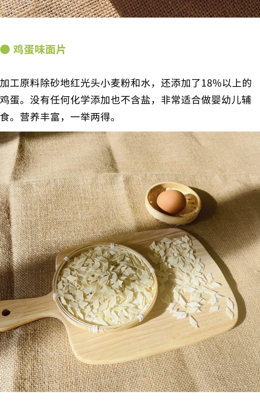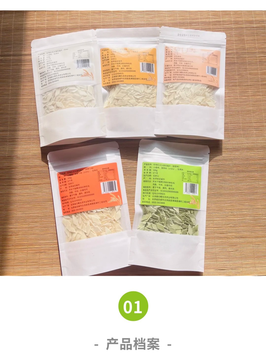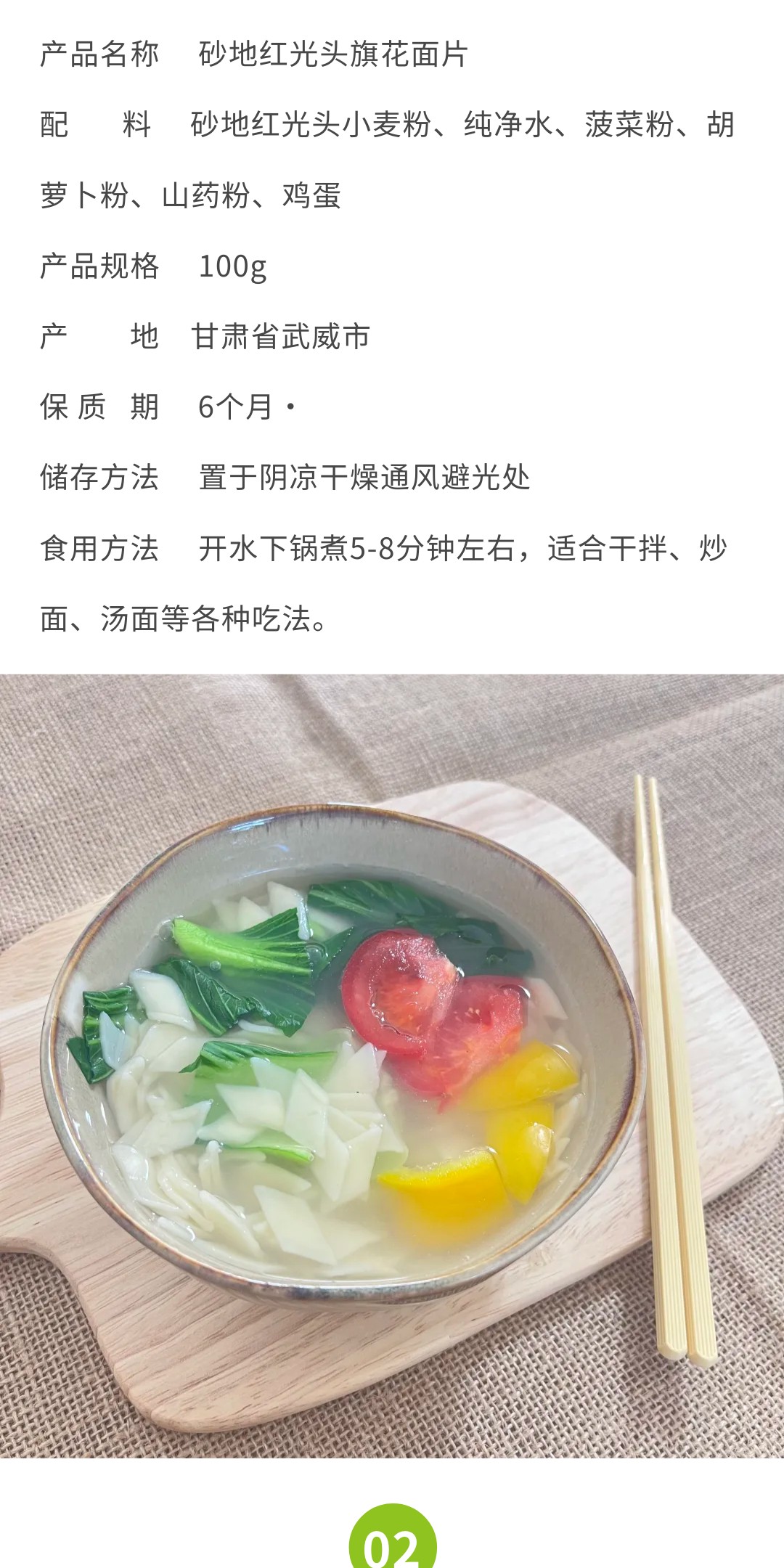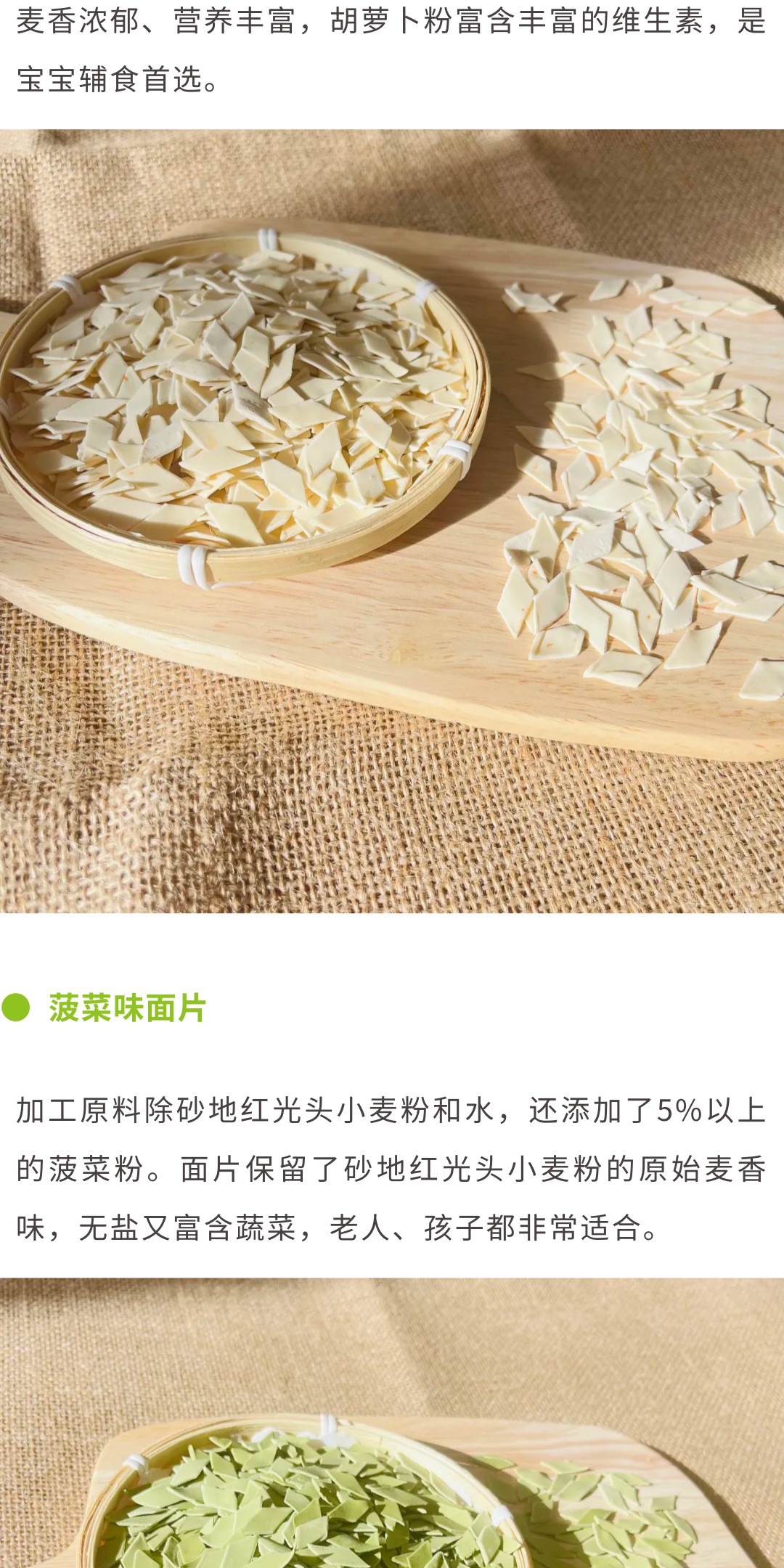 砂地红光头旗花面片(原味、菠菜味、胡萝卜味、鸡蛋味、山药味)100g/袋