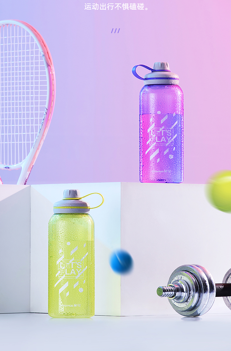 茶花运动水杯塑料大容量便携水壶健身夏季杯1200ml-050015