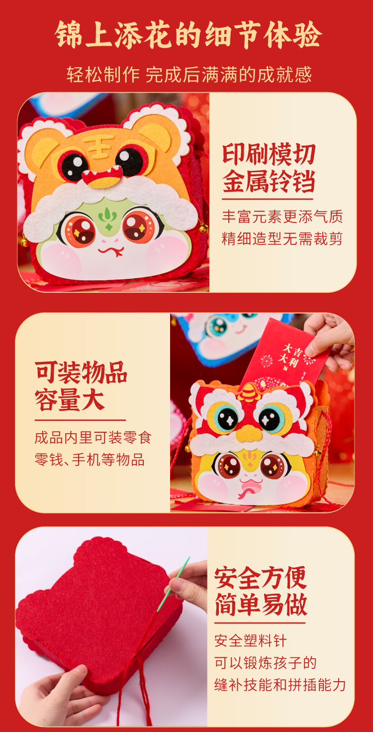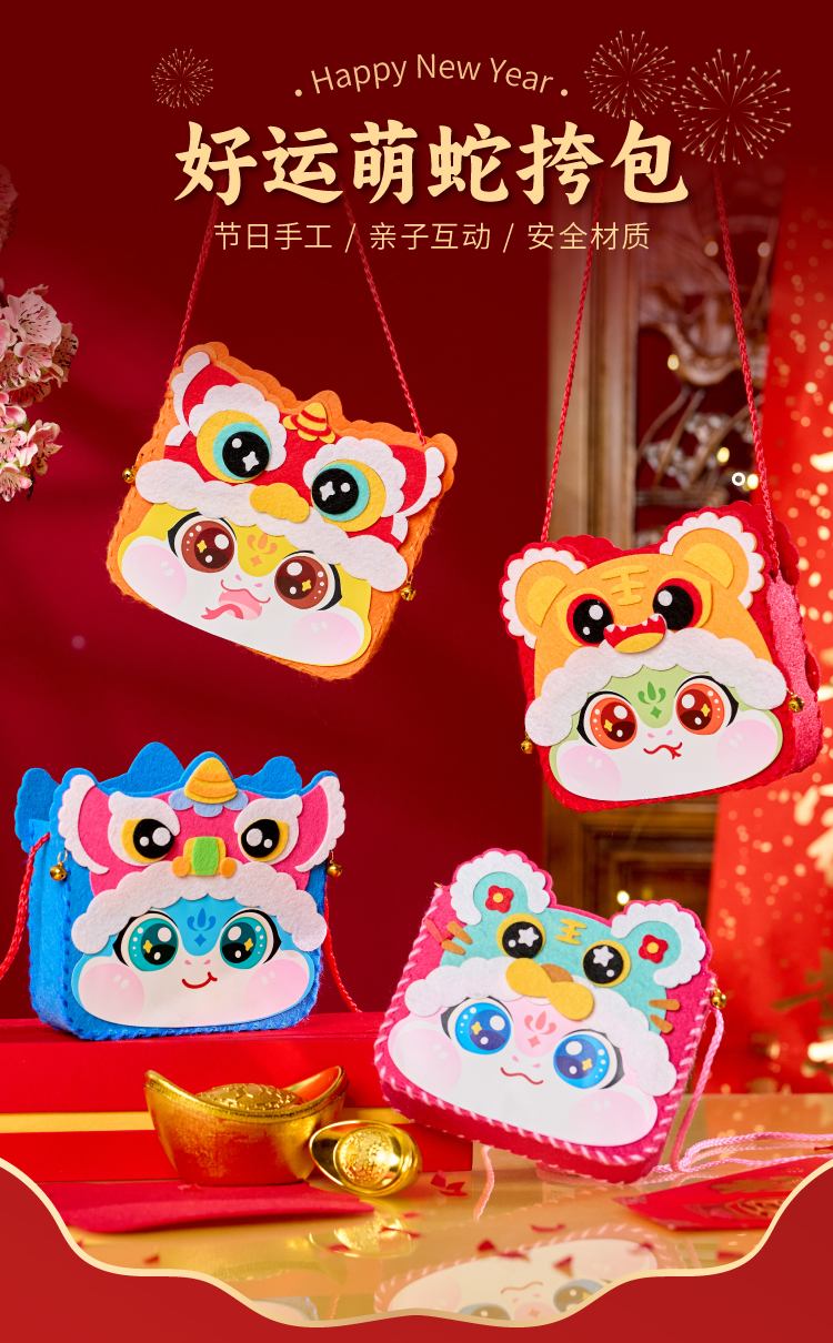 【MEIKE新年】新年蛇年元旦春节好运萌蛇挎包手工diy儿童制作材料包幼儿园包包