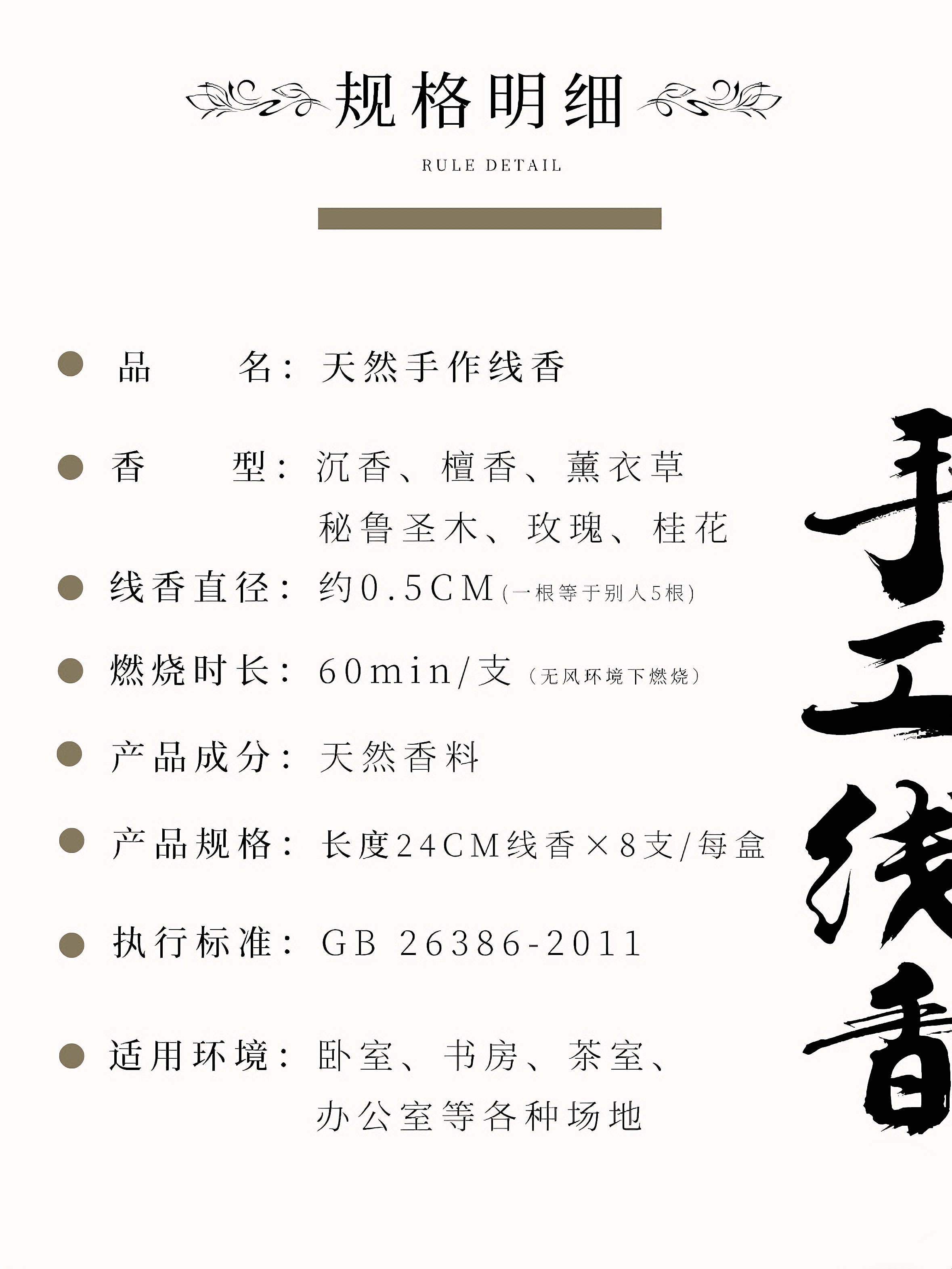 【产品规格】:8支/盒,长约24cm,可燃烧约60分钟