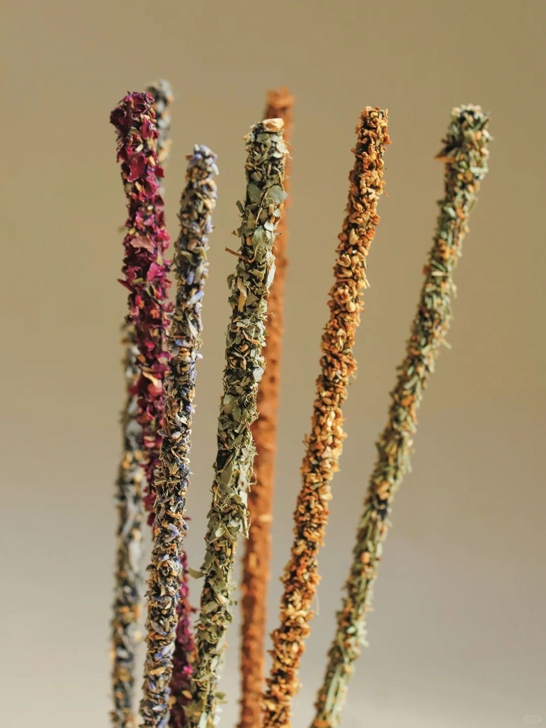 区别于传统香薰的外观,线香上面全植物包裹
