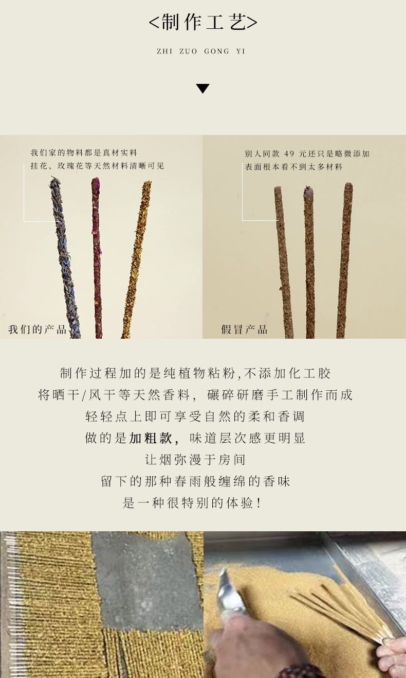 纯手工制作,所用香料均是纯植物草药