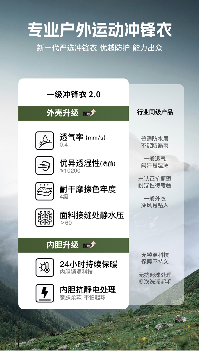 热卖中!!【鸟家同厂】Fun Fun Beauty 空山雨新国标一级情侣款七防冲锋衣MY2562(执行标准:GB/T32614-2023 I 级)
