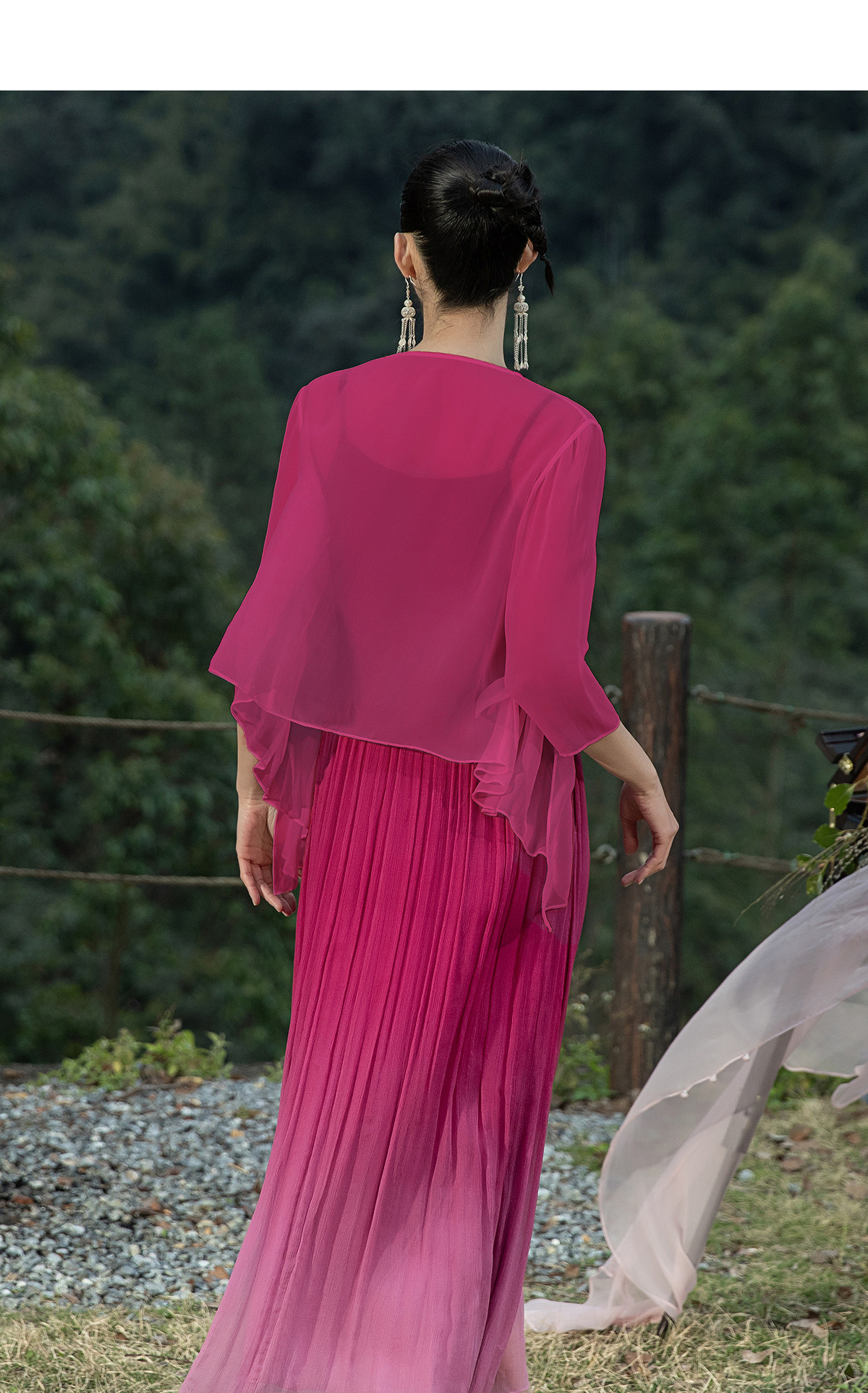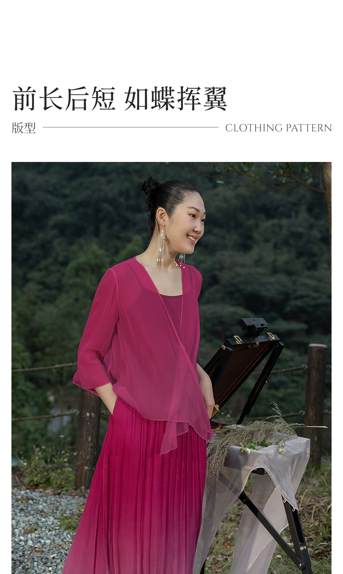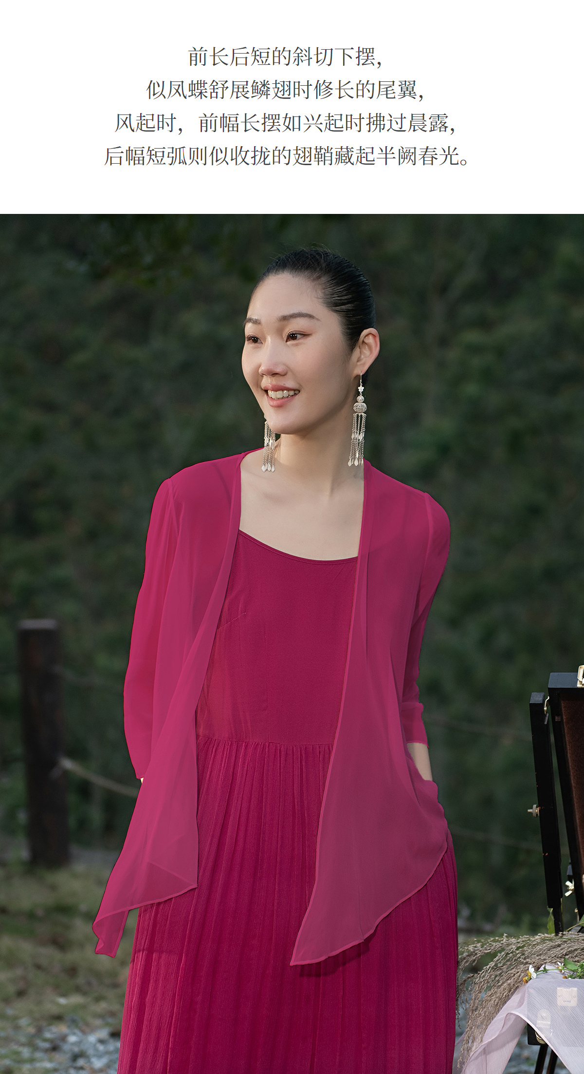 【林栖设计小店】真丝衫牡丹红优雅气质宽松显瘦2026春季新款开衫上衣女1961068B