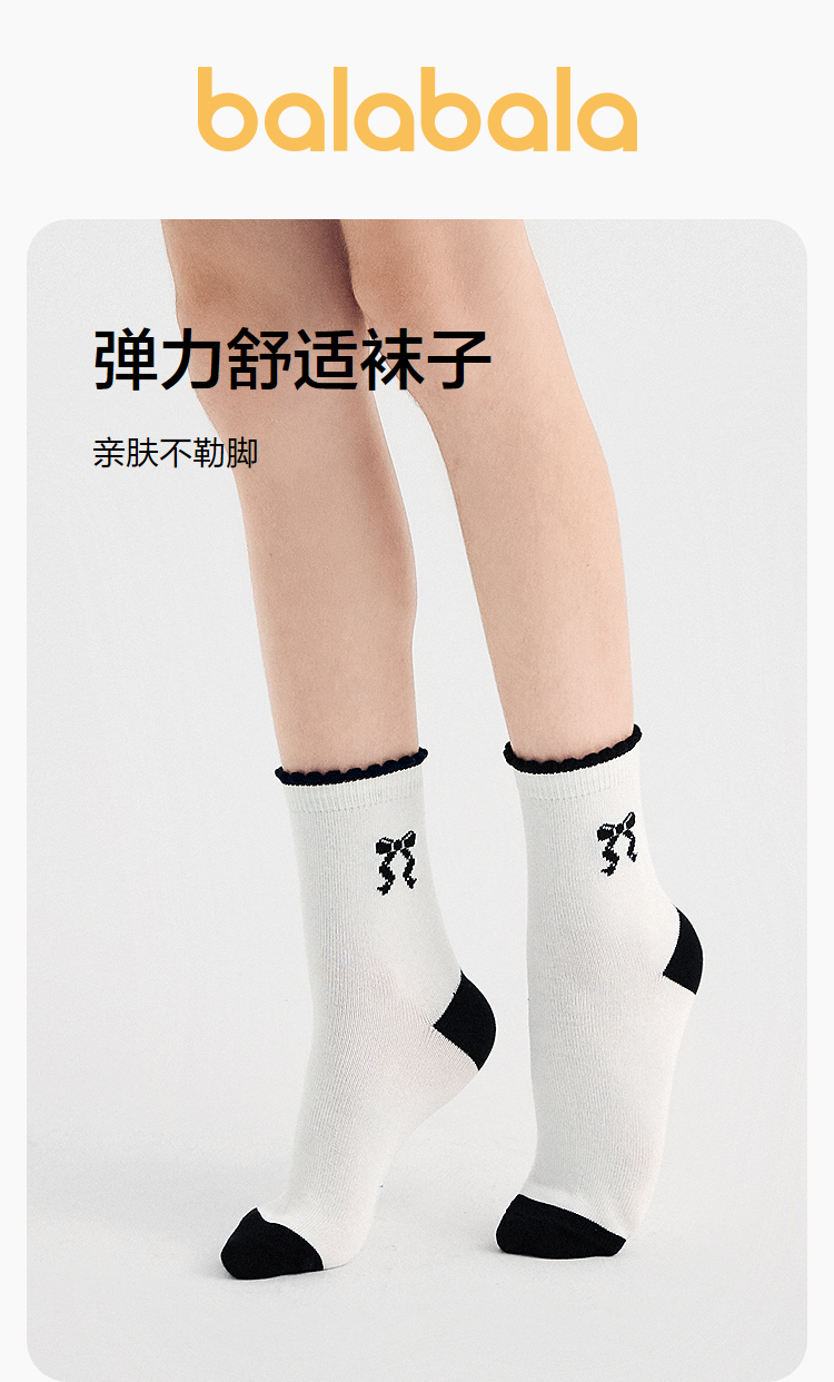 【商场同款】巴拉巴拉女童袜子秋新品儿童提花袜不勒脚甜美两双装