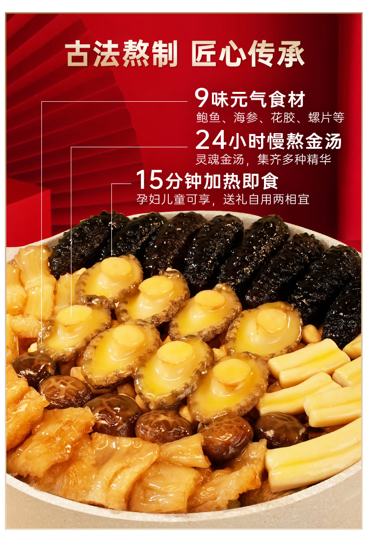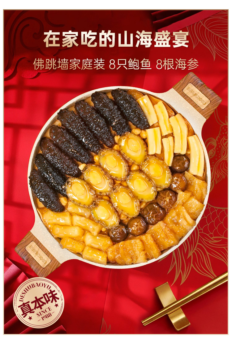 德叔鲍鱼佛跳墙五福盛宴年货礼盒 正品海鲜加热即食年夜饭礼盒 专注鲍鱼36年 在家吃的山海盛宴