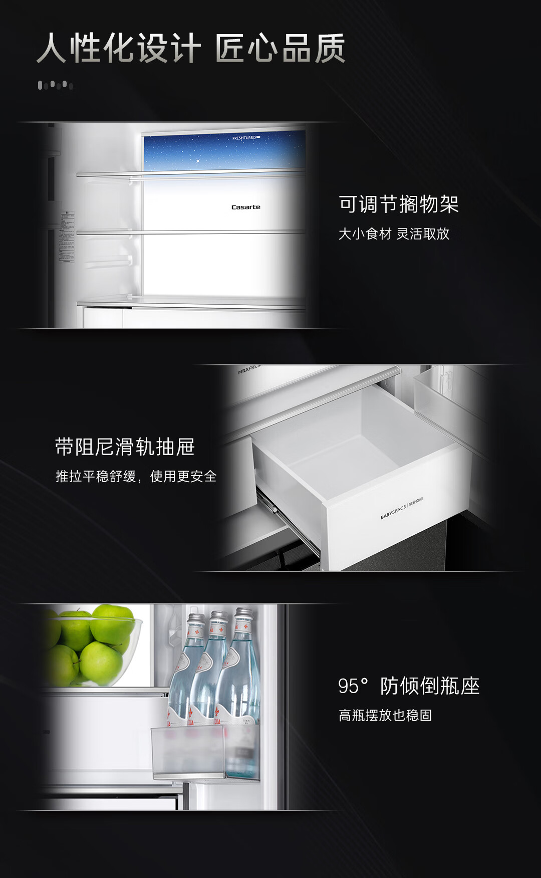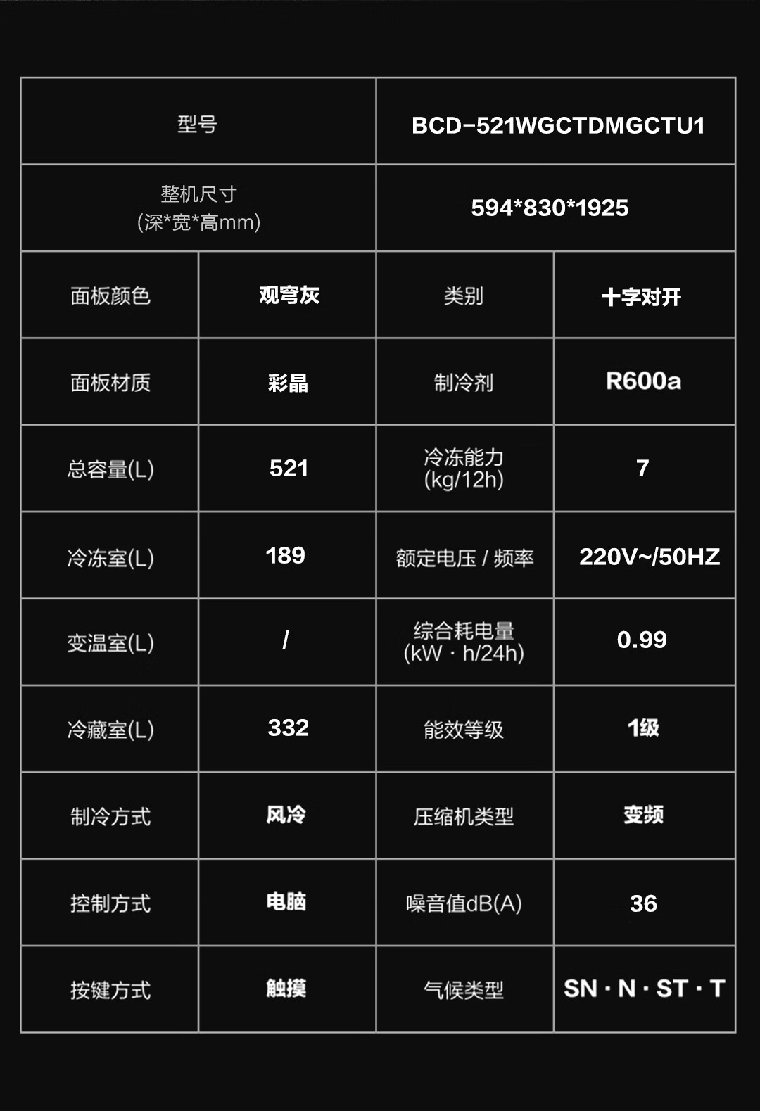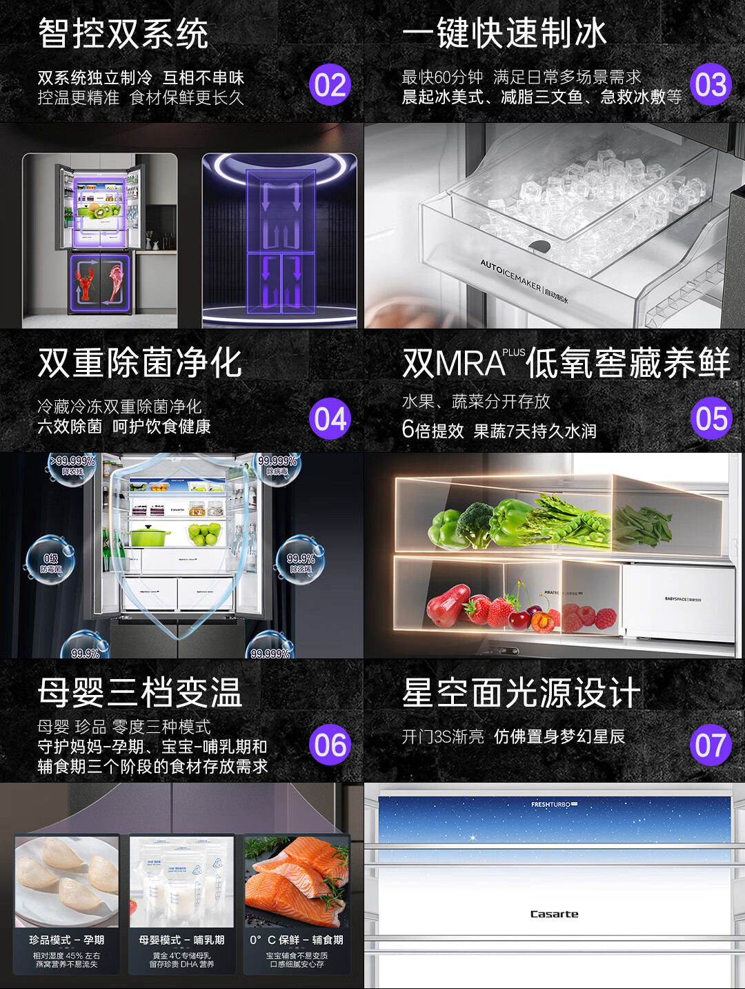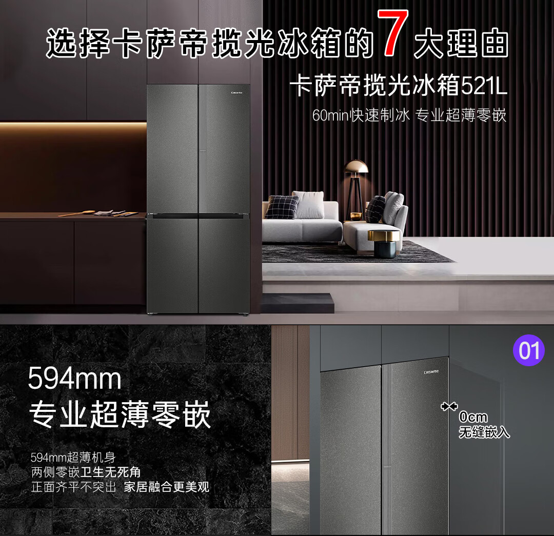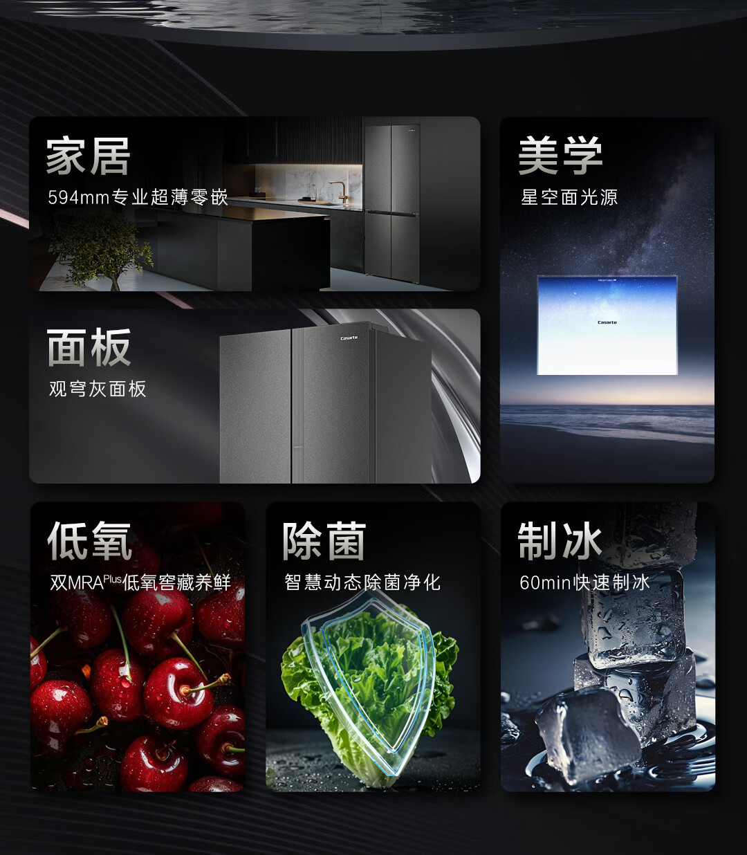 卡萨帝(Casarte)揽光冰箱星空版521升全自动制冰594mm超薄零嵌入式双系统十字四开门国家补贴BCD-521WGCTDMGCTU1