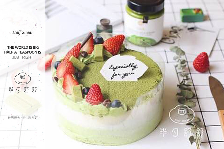 装饰:青岚抹茶粉 新鲜草莓蓝莓 抹茶巧克力 纸质插牌 青岚抹茶奶油裱花